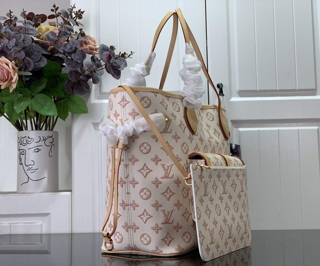 1:1 Replica Louis Vuitton LV Neverfull MM White/ Black Essential Bag For Women M20921 31 cm/ 12.2 in