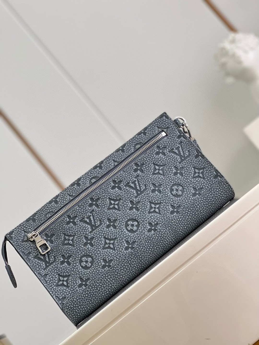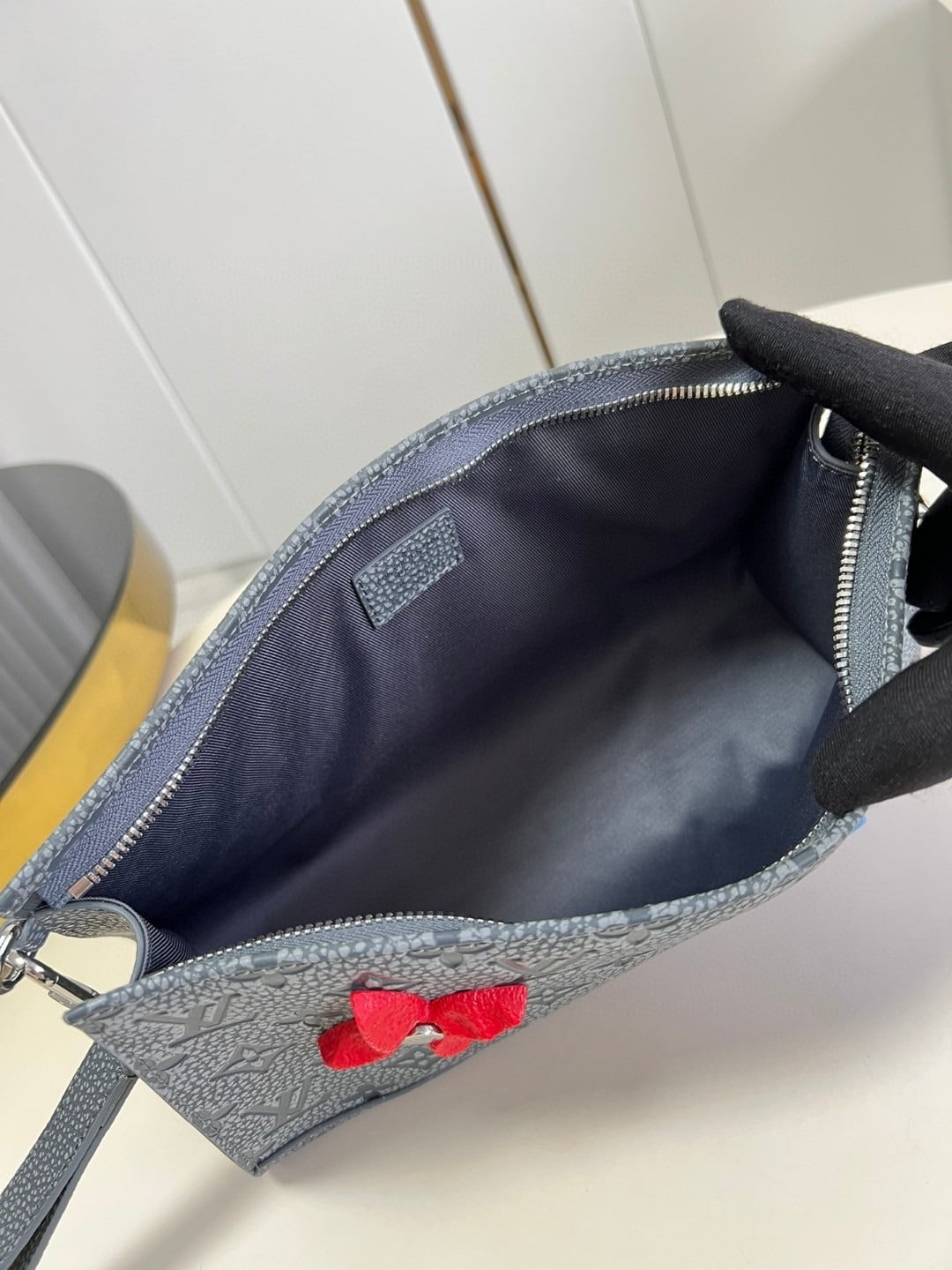 Made from grained Taiga , the Pochette Voyage is a zipped travel pouch that can be carried by hand as a casual men’s clutch. It features silver-color hardware and is signed with LV initials in the lower corner. With its card slots and spacious main compartment, it’s a great option to carry small essentials.