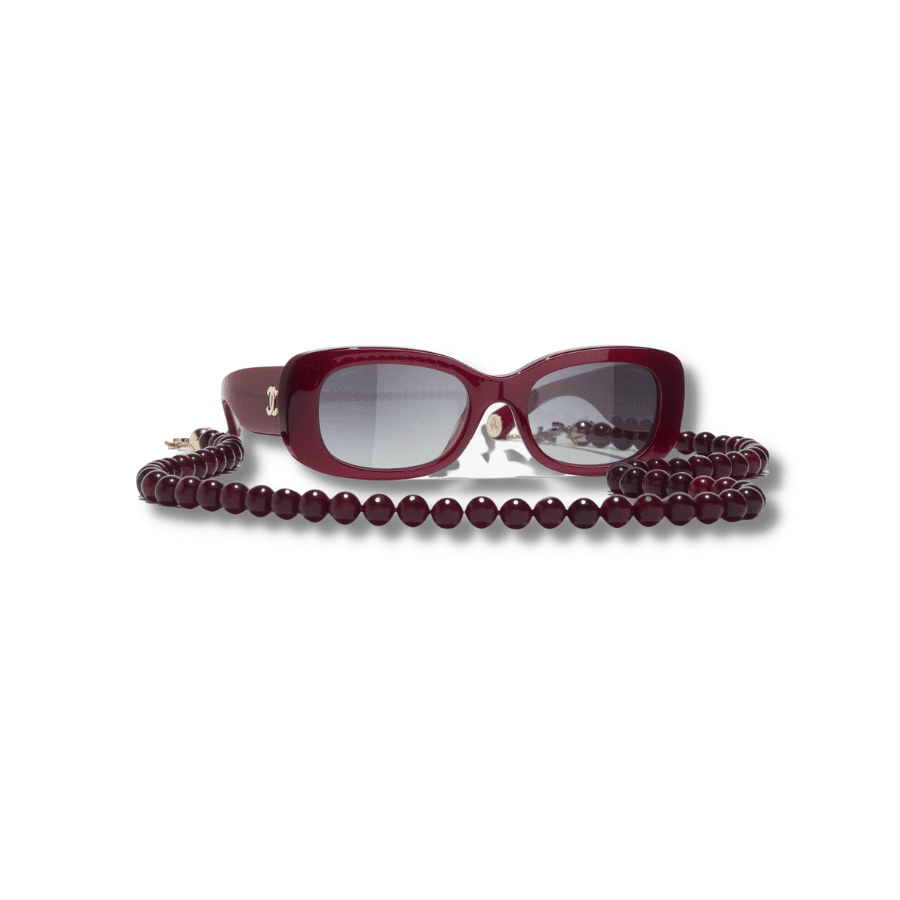 Chanel is no longer a strange brand to anyone, if you love accessories from this brand, you definitely cannot ignore Chanel Rectangle Sunglasses Burgundy And Gold.