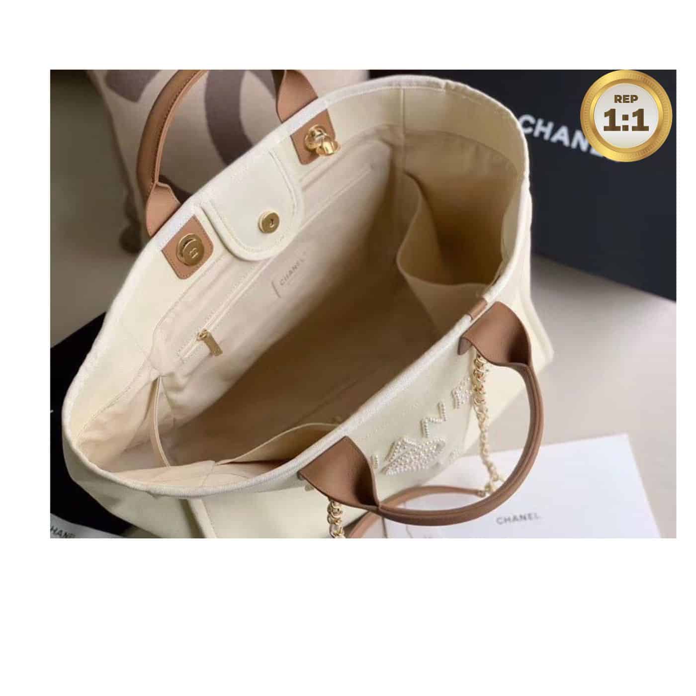 Chanel Large Deauville Pearl Tote Bag White – A66941