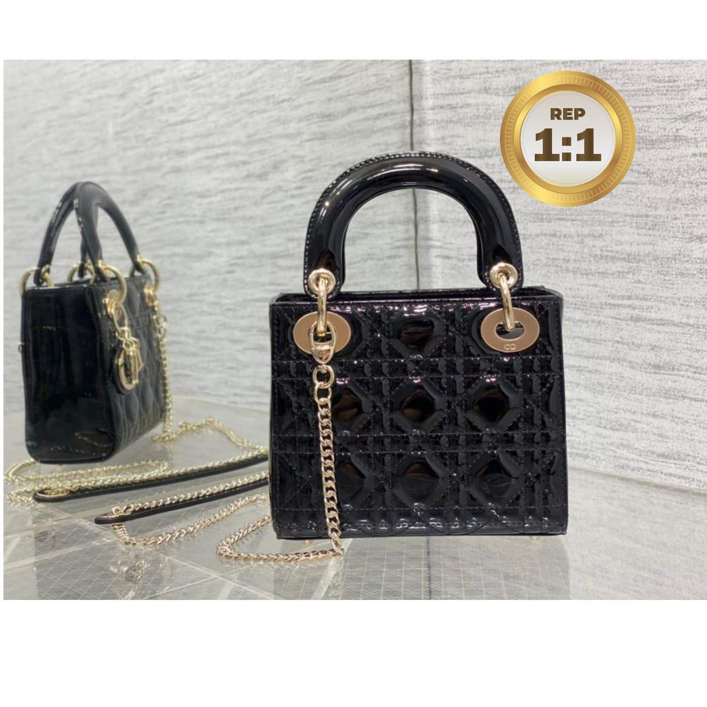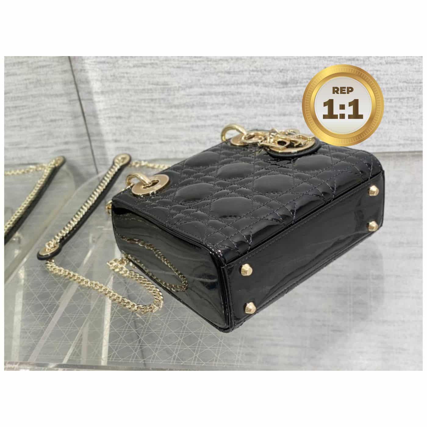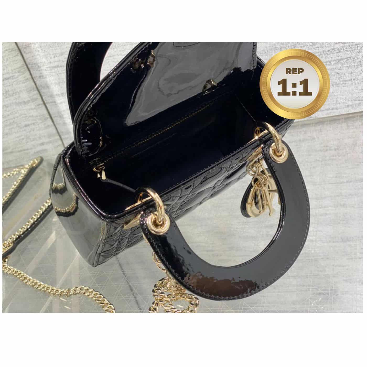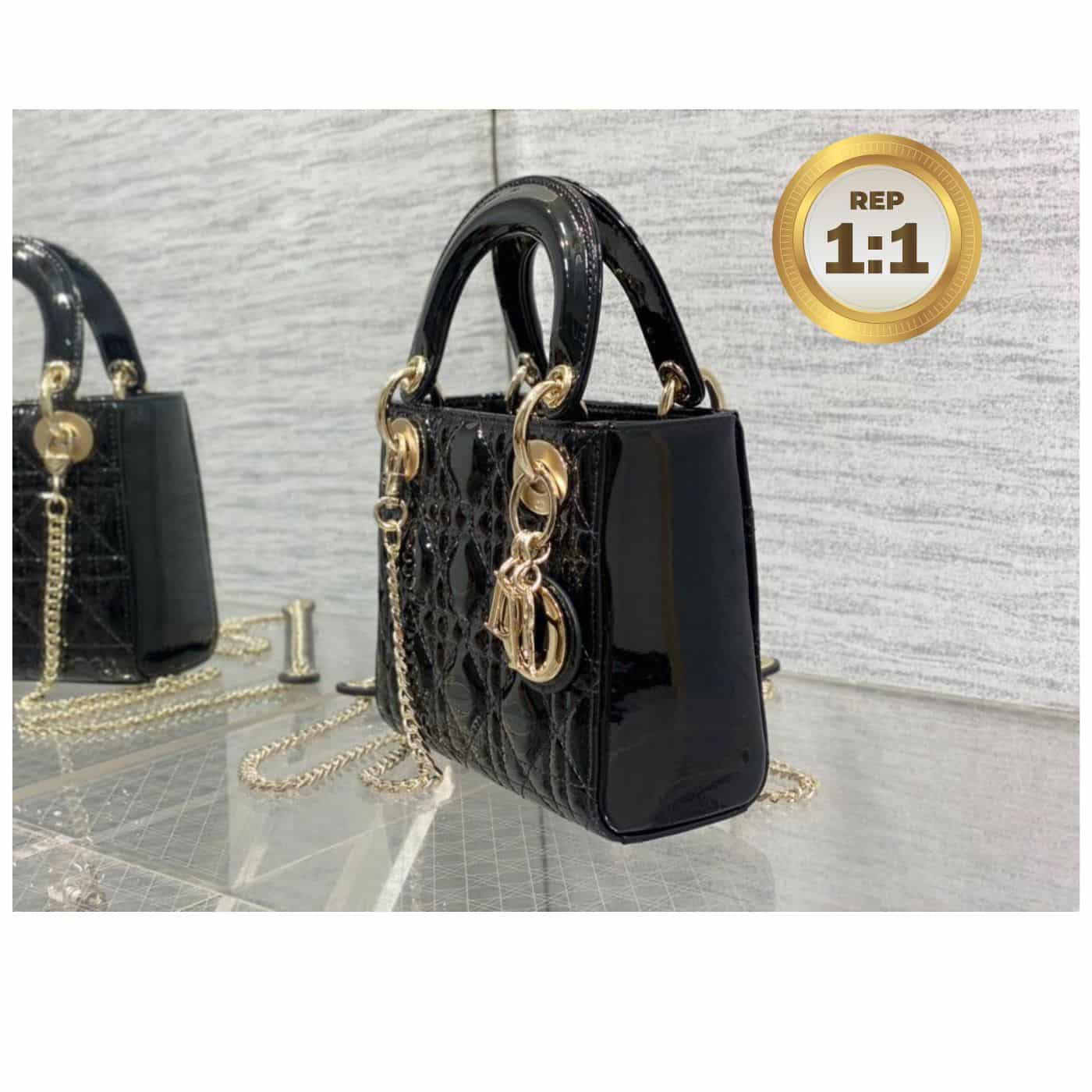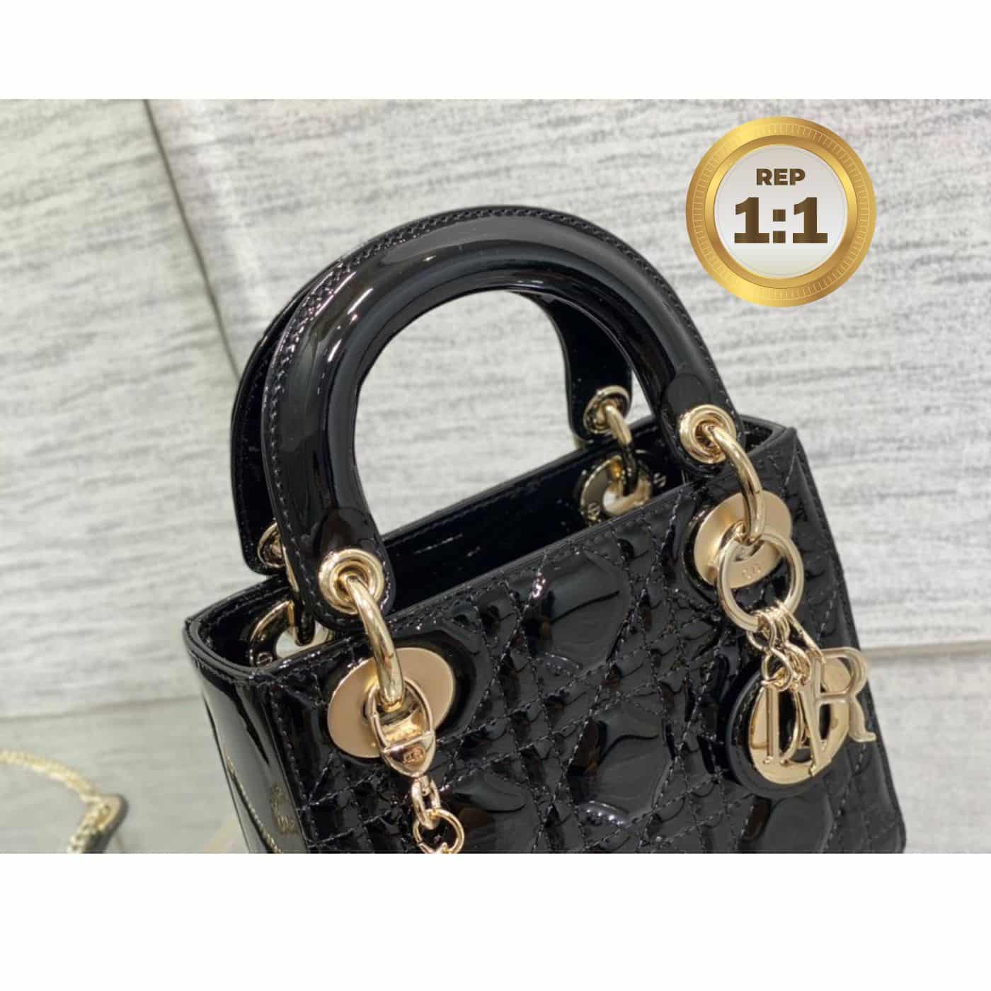- The Lady Dior handbag epitomizes the House’s vision of elegance and beauty. Sleek and refined, the timeless style is covered with Cannage stitching, creating the instantly recognizable quilted texture. The silver-finish metal ‘D.I.O.R.’ charms embellish and illuminate its silhouette. Featuring a removable chain shoulder strap, the miniature Lady Dior bag can be carried by hand or worn crossbody as an ideal evening wear companion