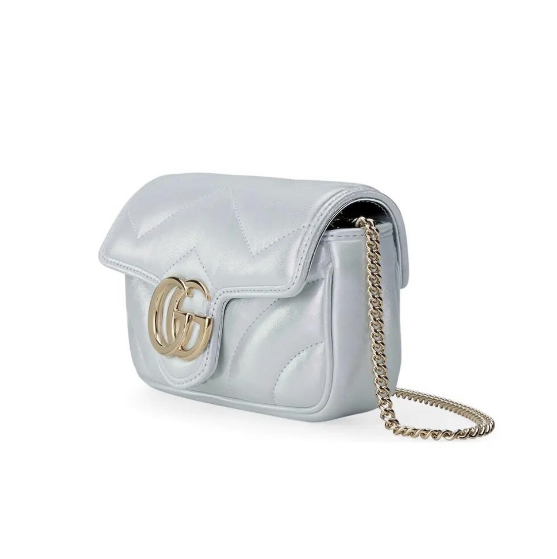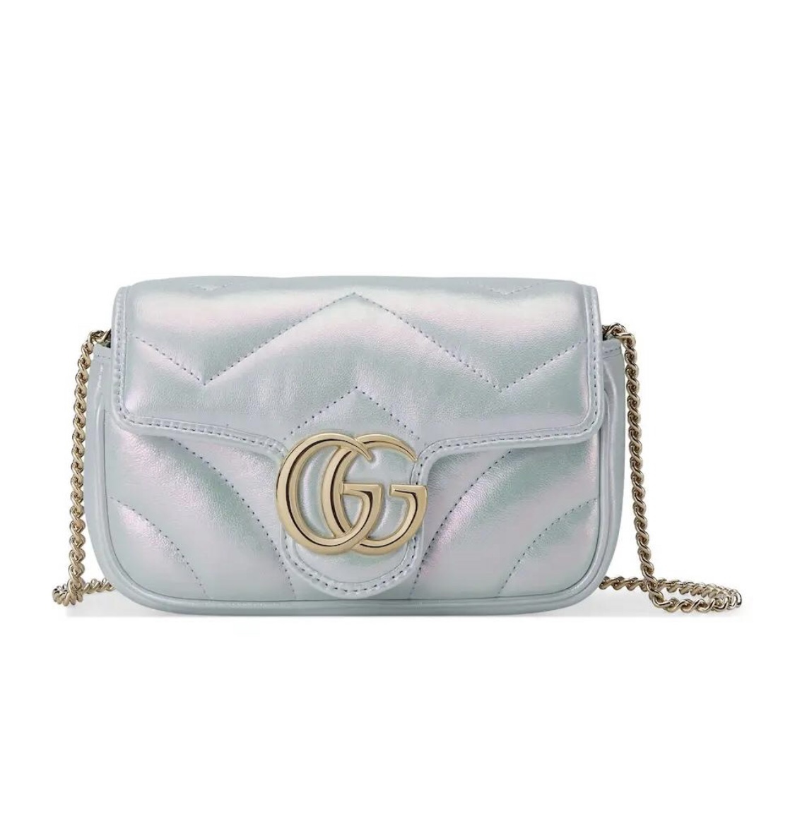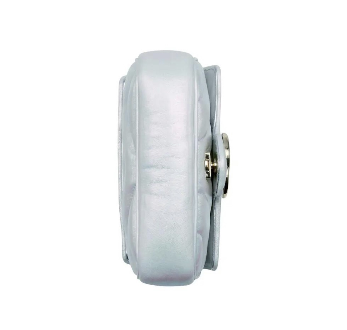 Replica GG MARMONT SUPER MINI BAG P Light blue iridescent matelassé chevron leather 476433 AAC2U 4923