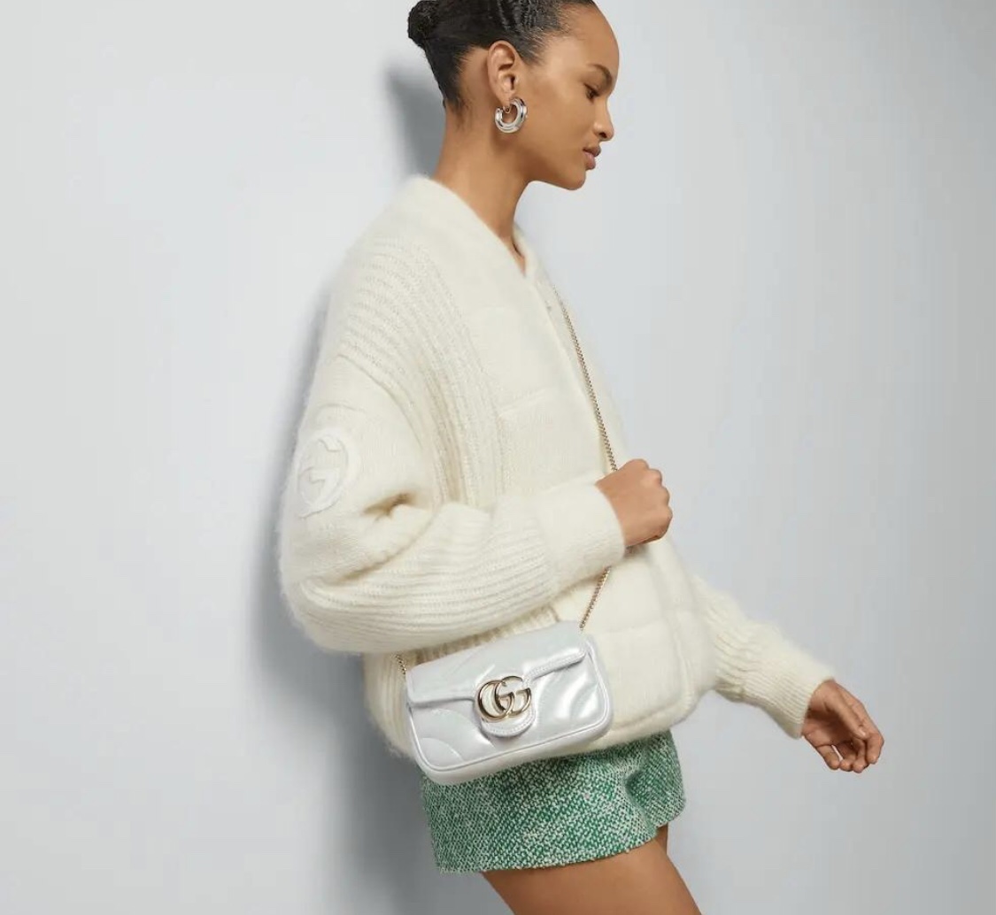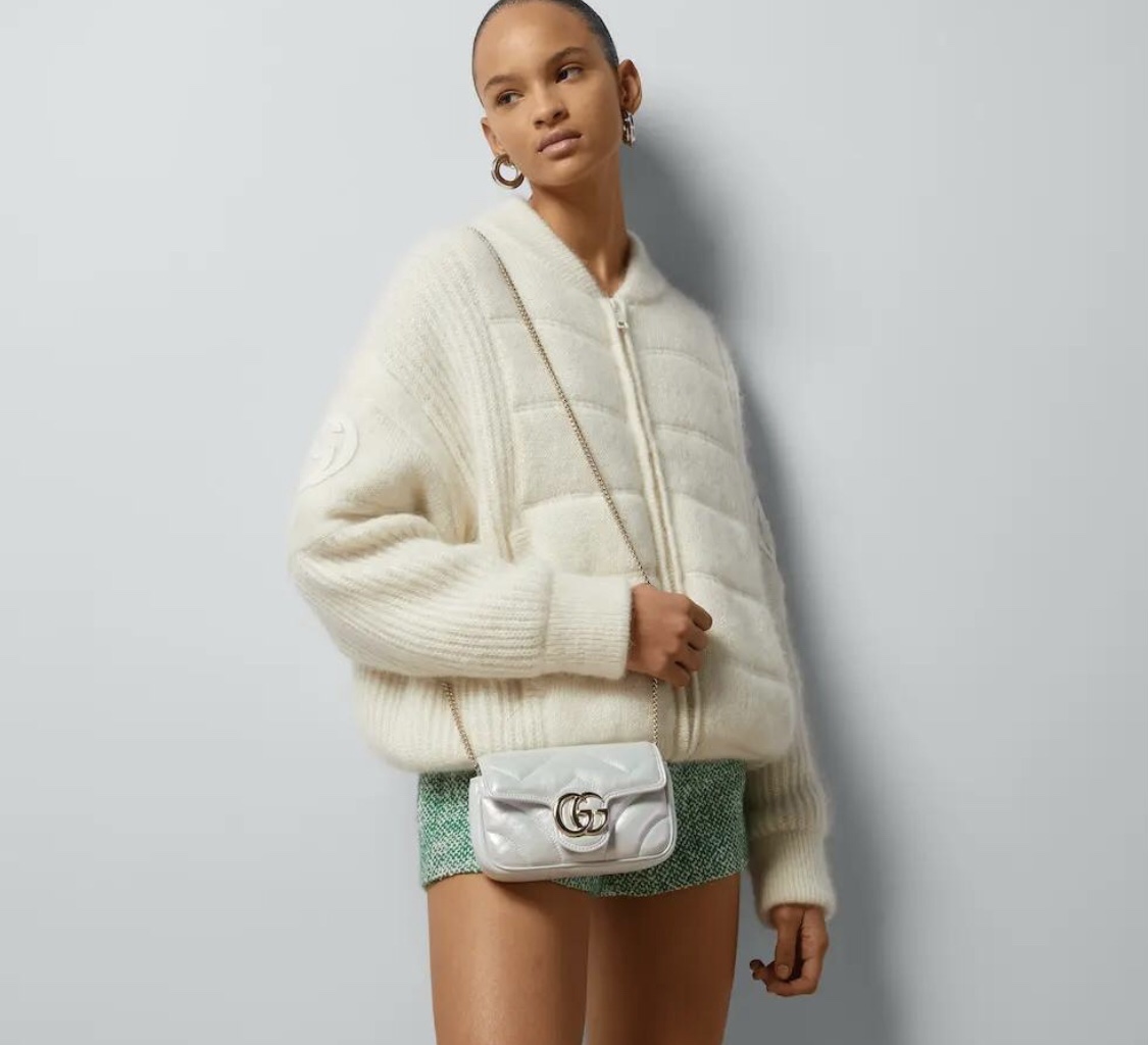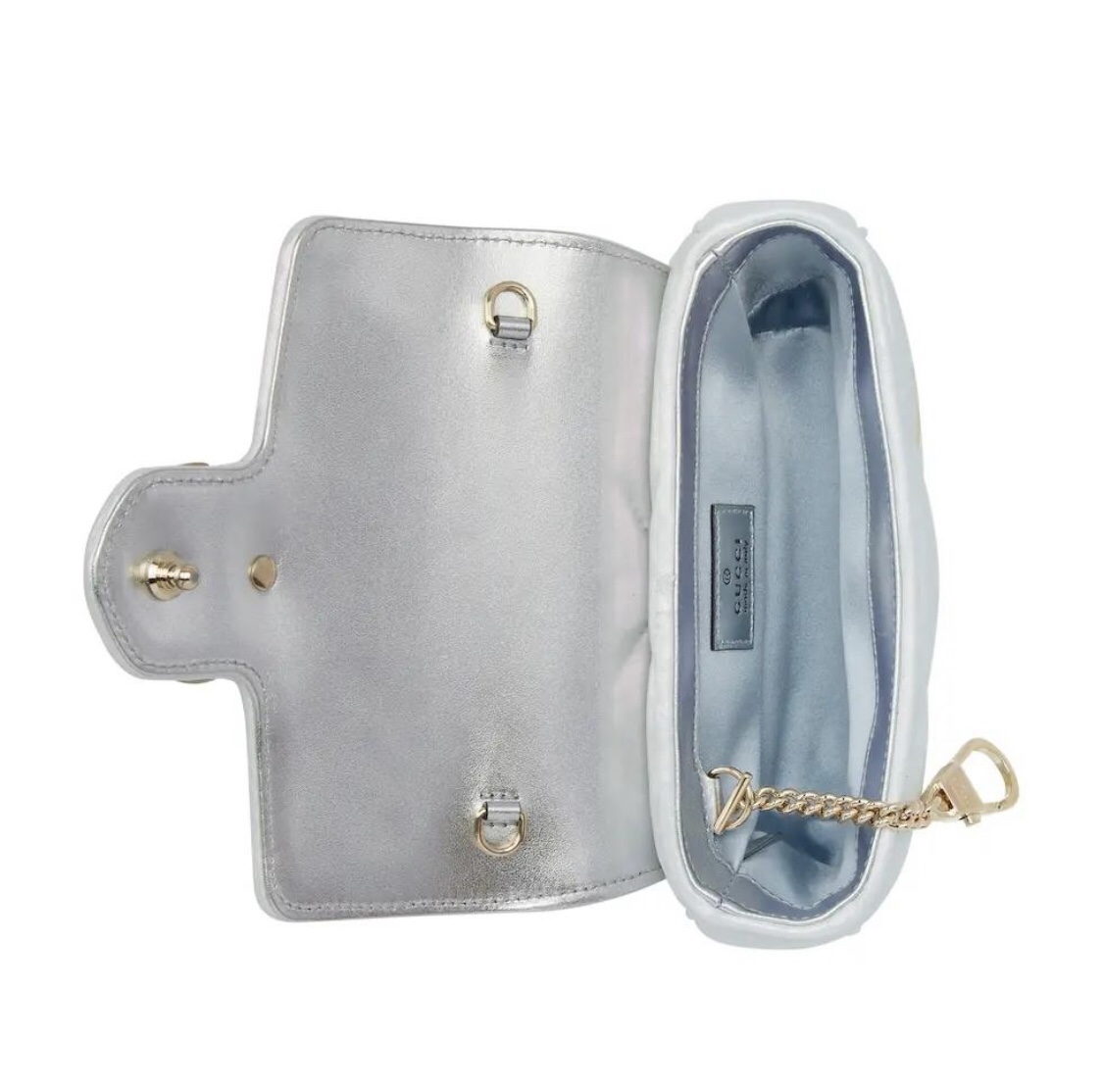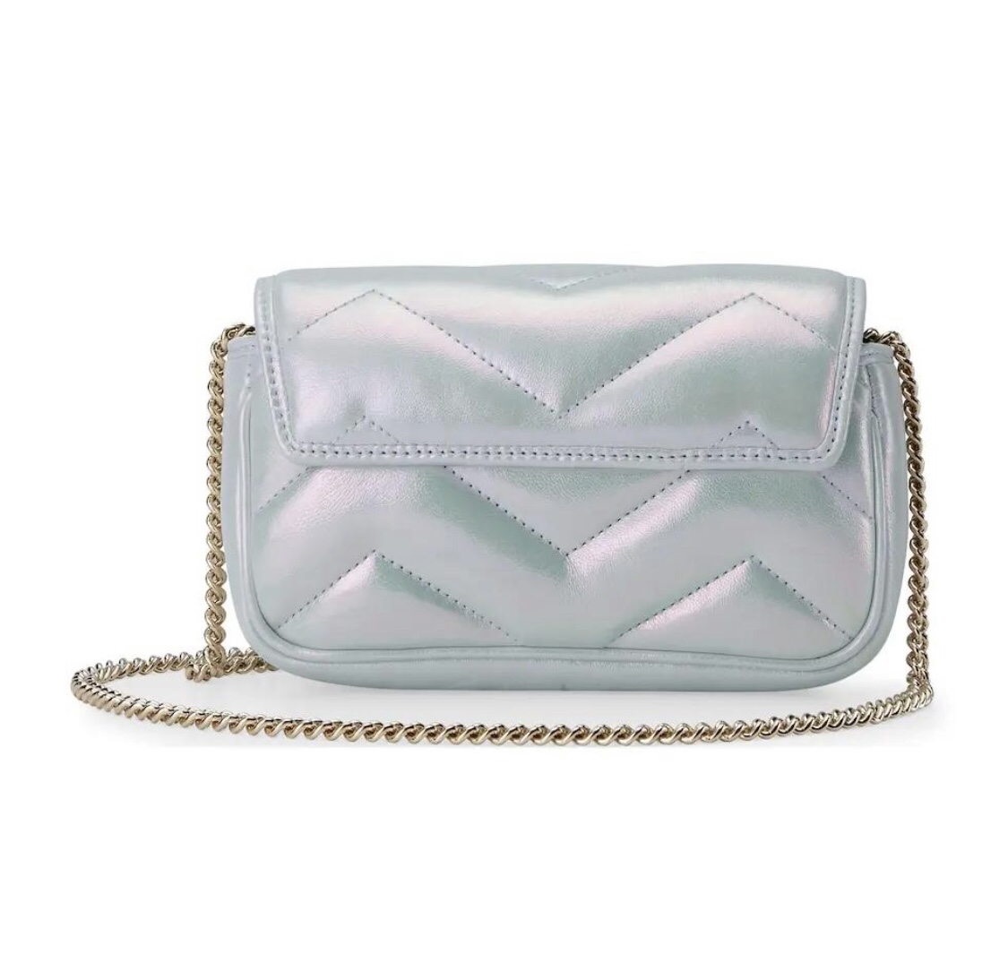 Replica GG MARMONT SUPER MINI BAG P Light blue iridescent matelassé chevron leather 476433 AAC2U 4923