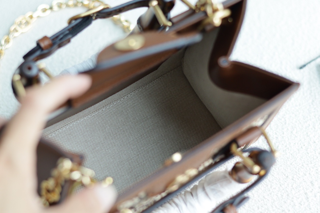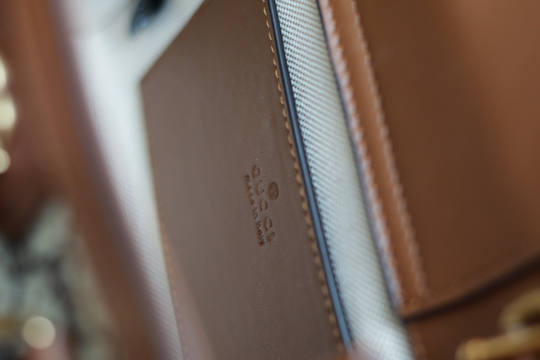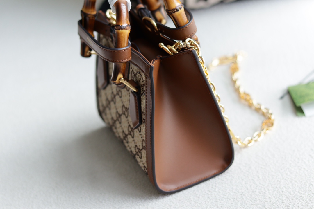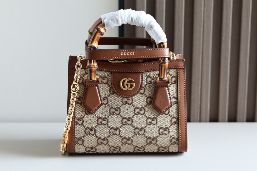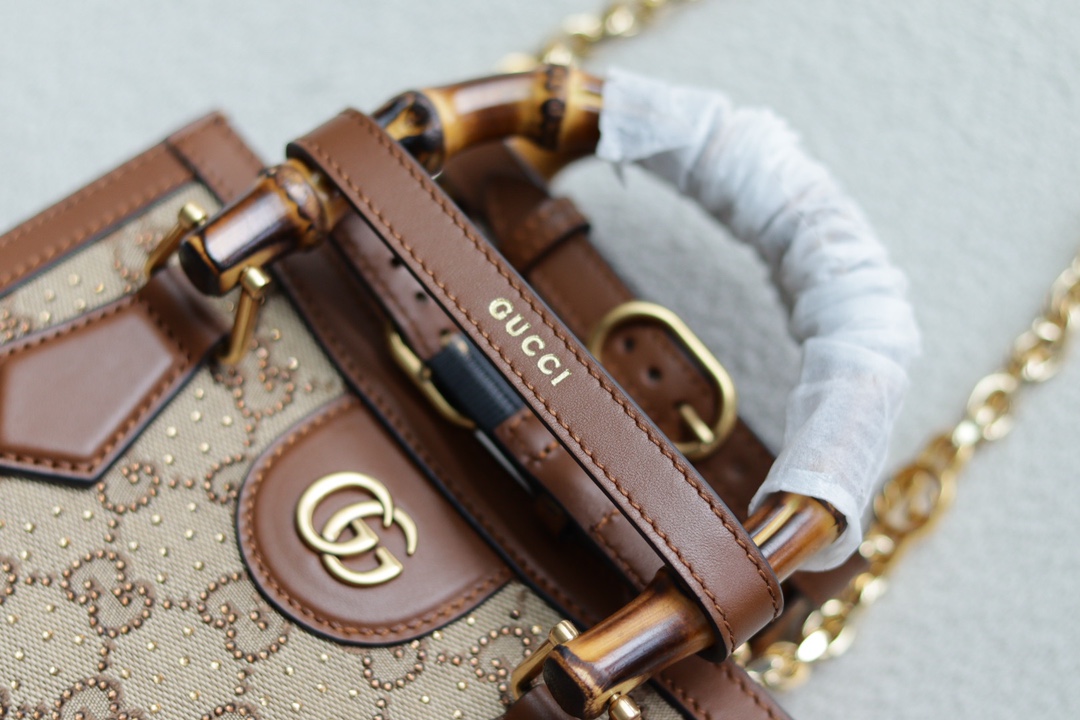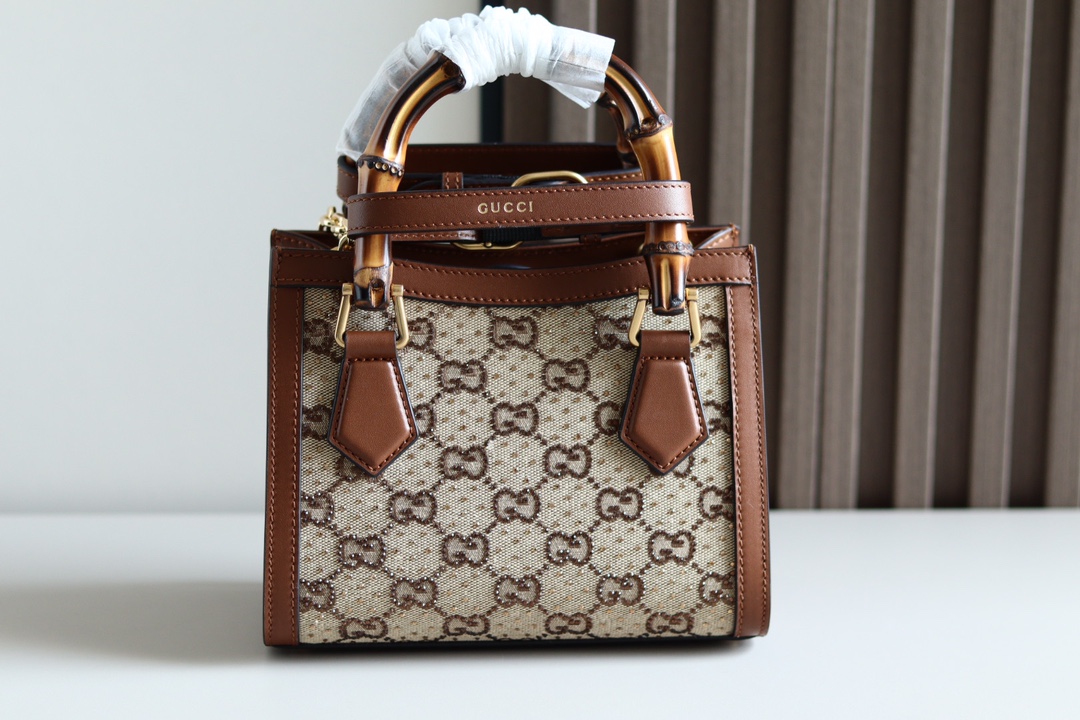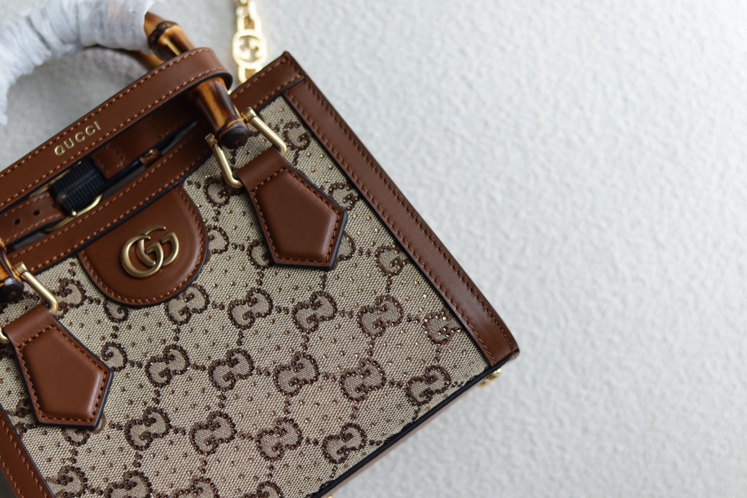 Replica GUCCI DIANA MINI TOTE BAG P Camel and ebony GG canvas with crystals 707449 21HRG 2687