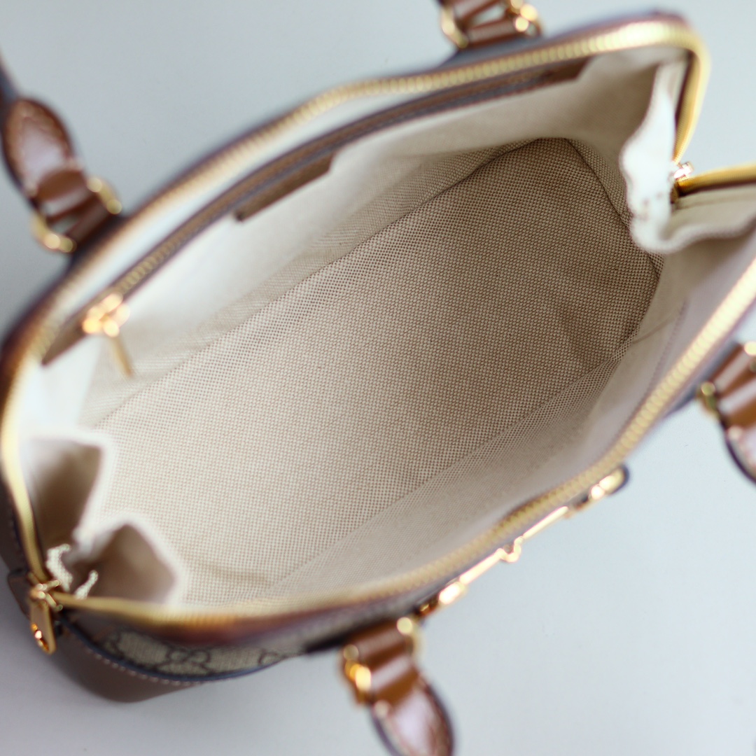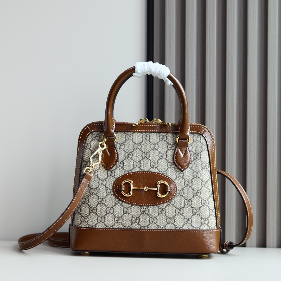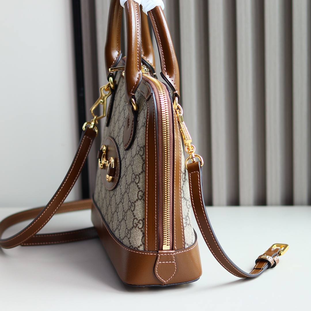1:1 Replica GUCCI HORSEBIT 1955 SMALL TOP HANDLE BAG P Beige/ebony GG Supreme canvas, and brown leather trims Exclusive For Women 621220 92TCG 8563