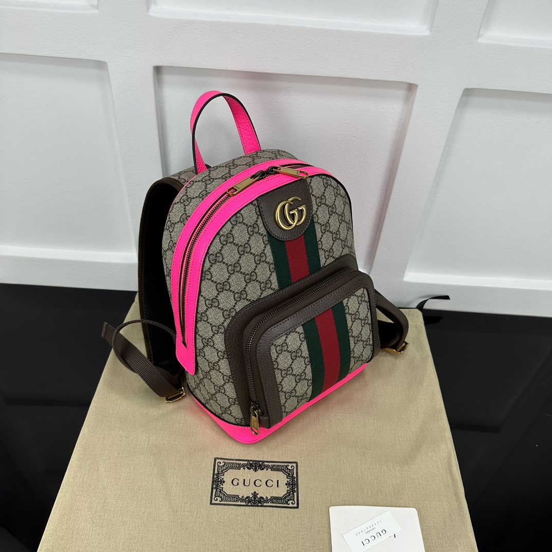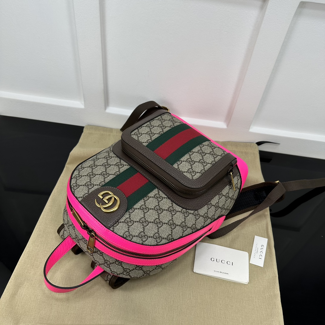 Replica GUCCI OPHIDIA GG SMALL BACKPACK P Beige and ebony GG Supreme canvas 547965 FADID 9762