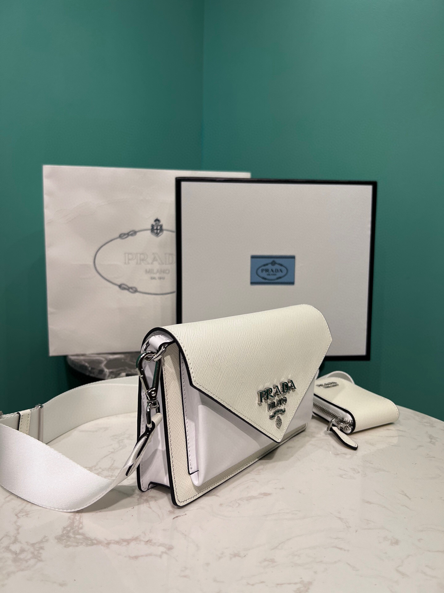 • Prada Brushed Shoulder Bag Grey For Women, Women's Bags 6.7in/17cm
