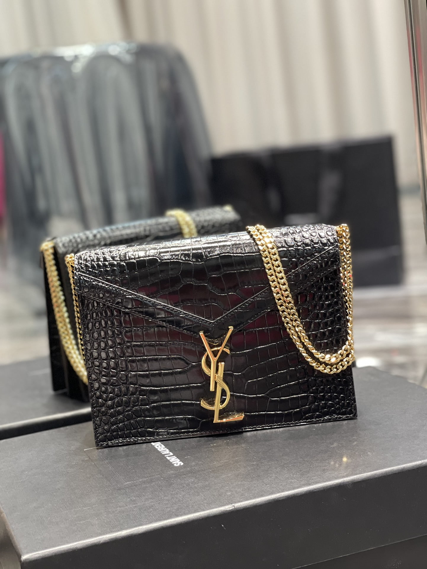 Saint Laurent Cassandra Medium Chain Bag Black For Women 8.6in/22cm YSL