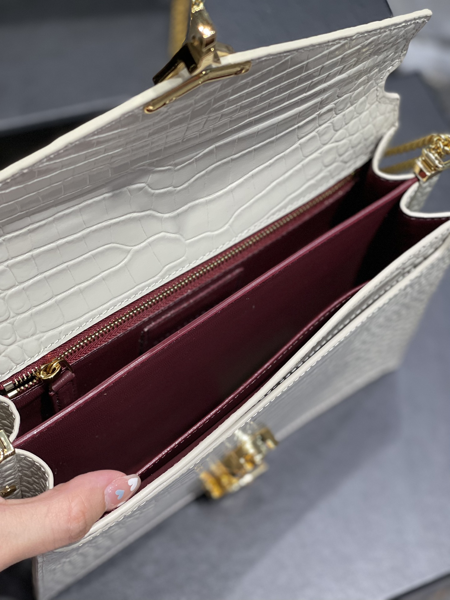 Saint Laurent Cassandra Medium Chain Bag White In Grain De Poudre Embossed For Women 8.6in/22cm YSL