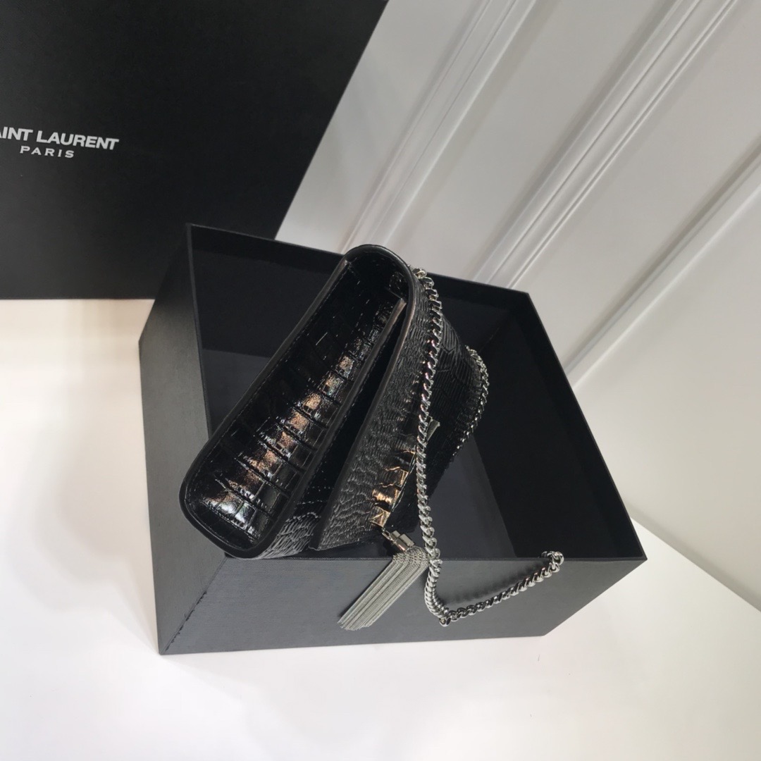 Saint Laurent Kate Medium Chain Bag With Tassel In Embossed Crocodile Black For Women 9.4in/24cm YSL 354119DND0N1000
