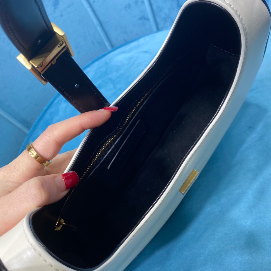 Saint Laurent Le Fermoir Hobo Bag White/Black For Women 9.5in/24cm YSL