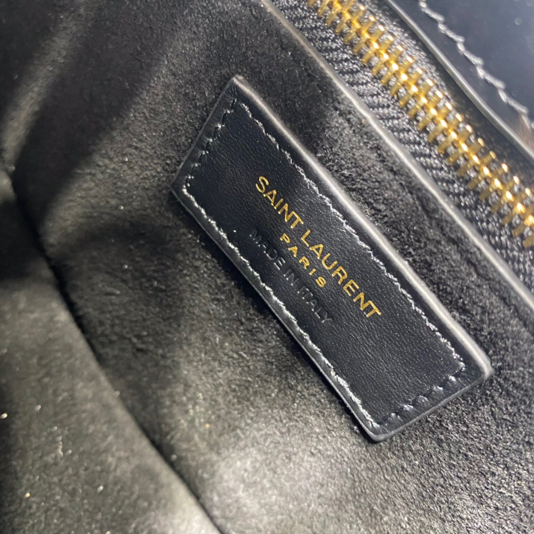 Hobo bag with saint laurent engraved magnetic buckle closure and adjustable handle.