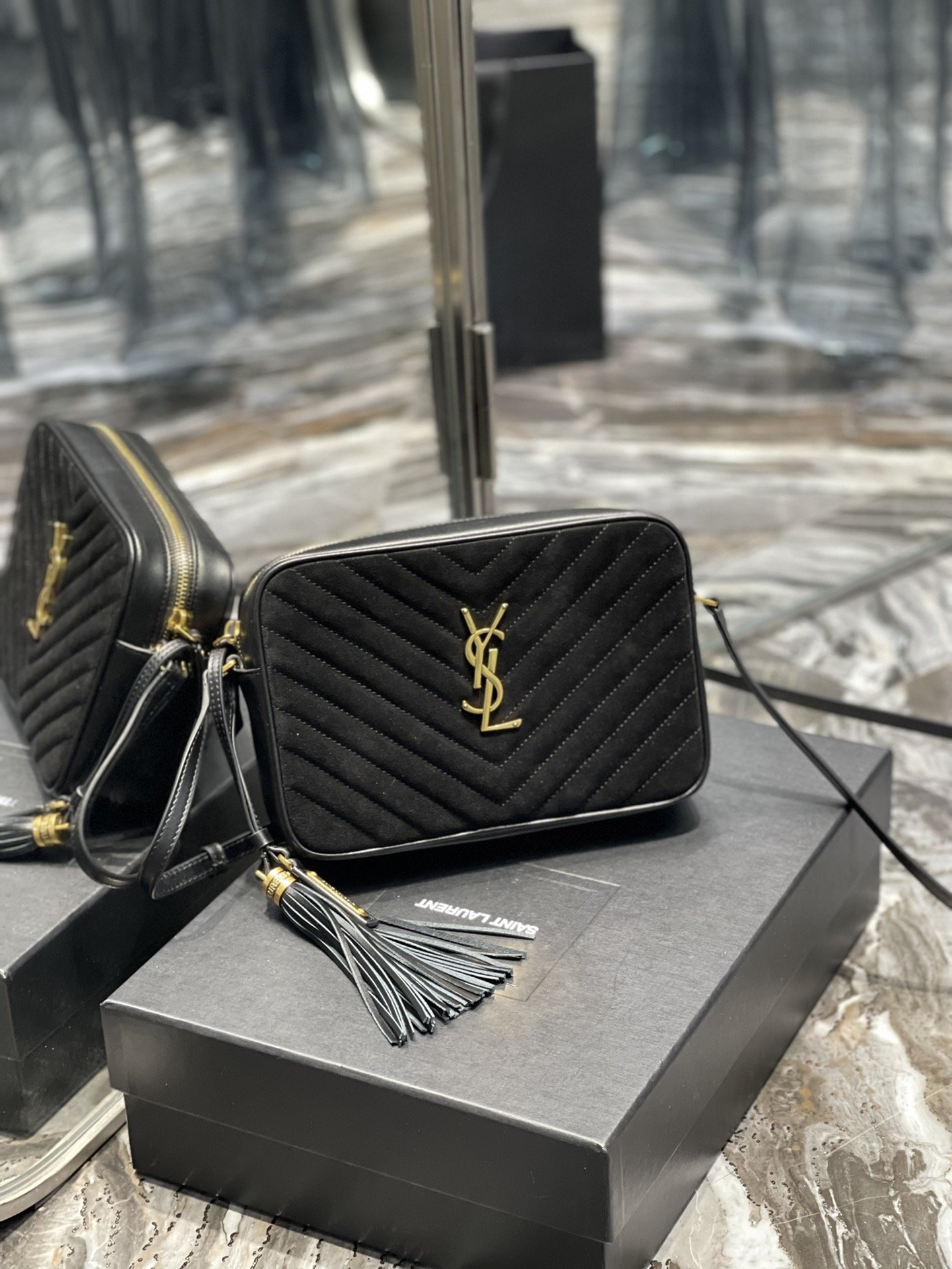 Saint Laurent Lou Camera Bag Black With Gold Hardware For Women 9in/23cm YSL 612544C4BW71000