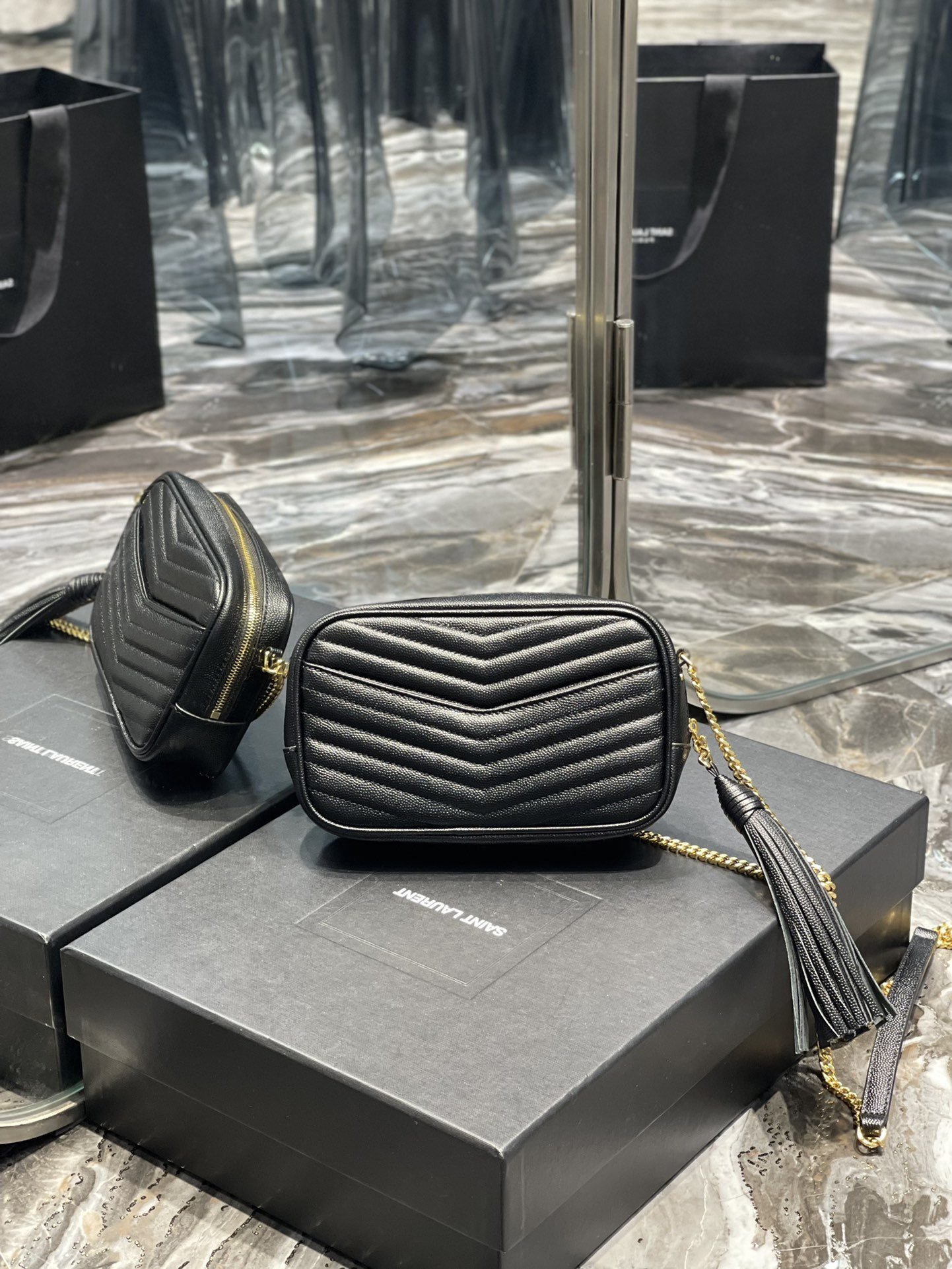 Saint Laurent Lou Mini Bag Black In Quilted Grain De Poudre With Gold Hardware For Women 7.4in/19cm YSl 6125791GF011000