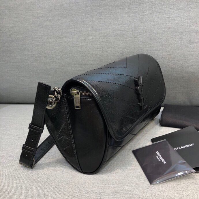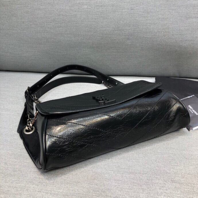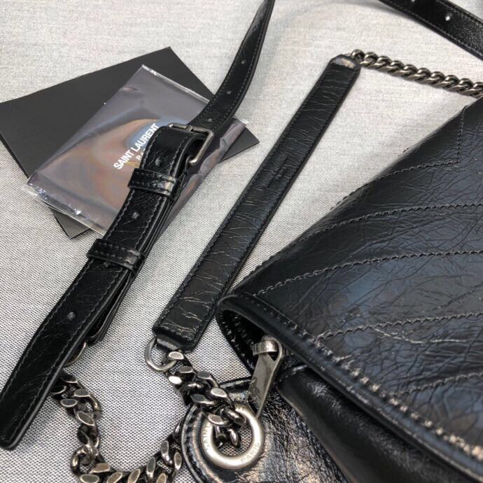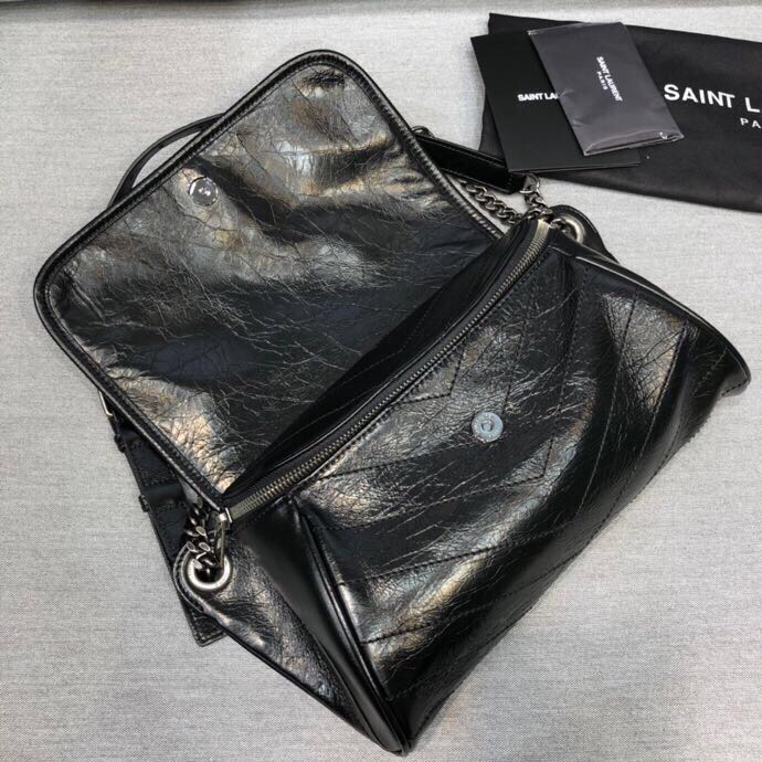 Saint Laurent Niki Medium Crinkled Shoulder Bag Black For Women 11in/28cm YSL