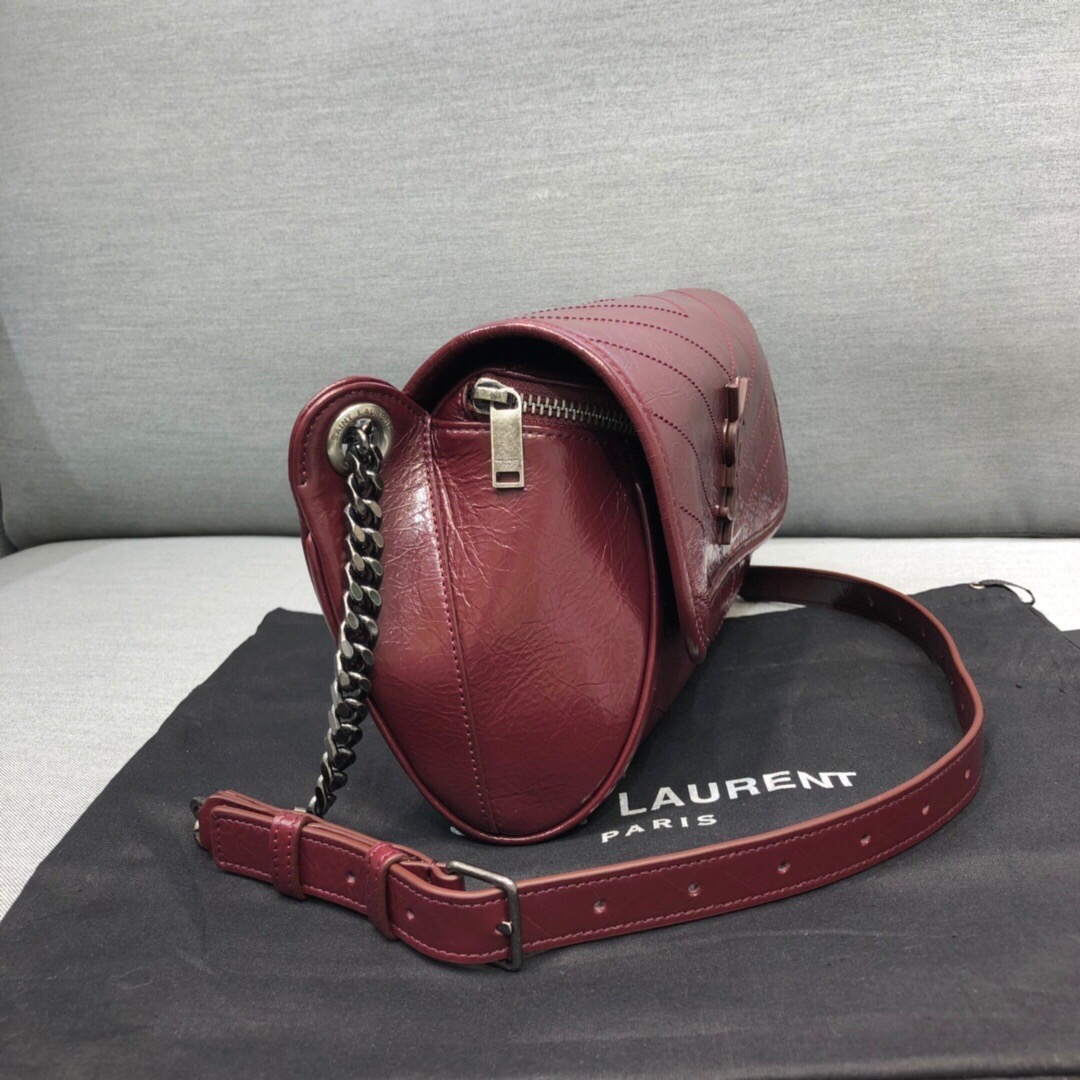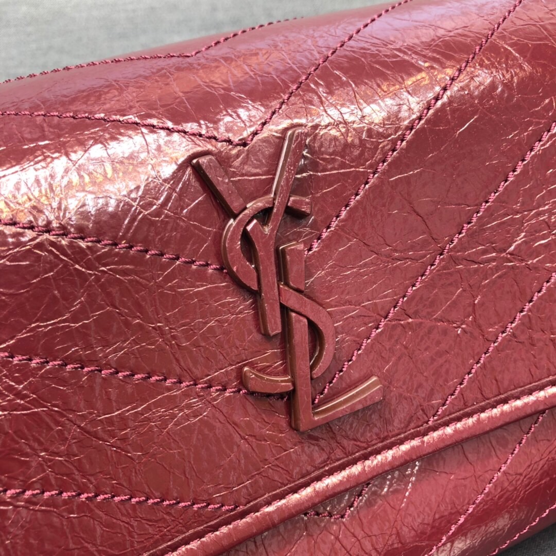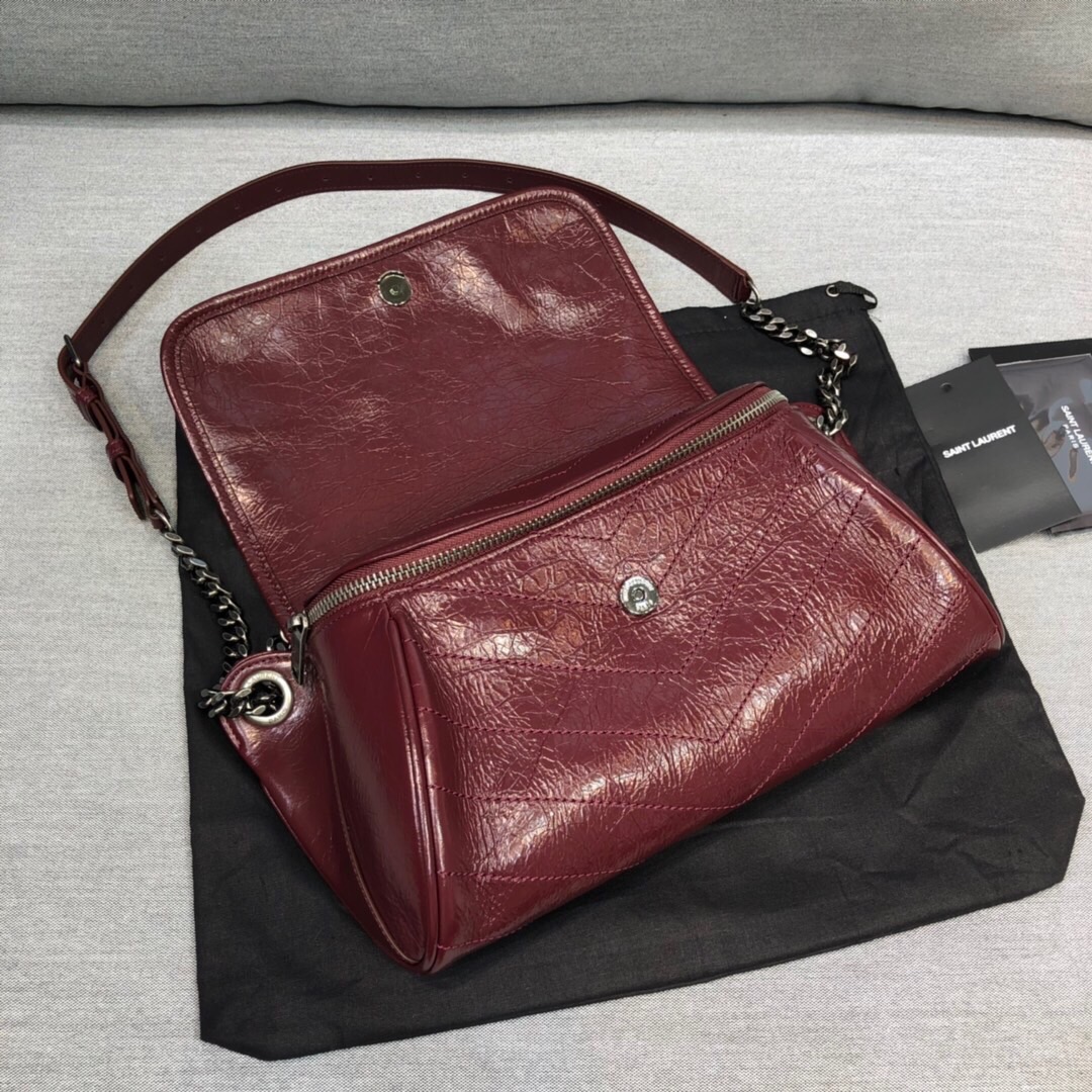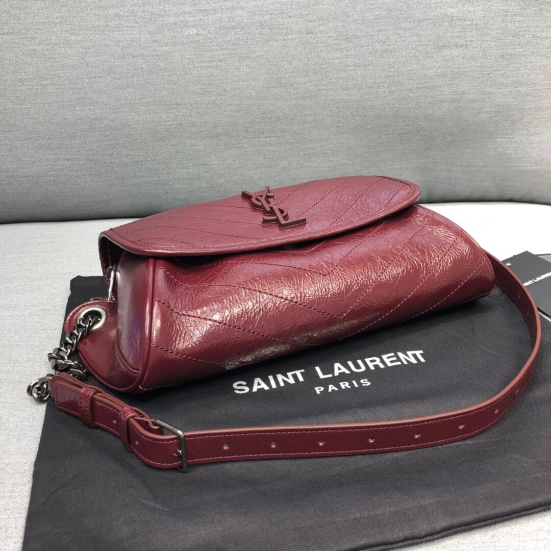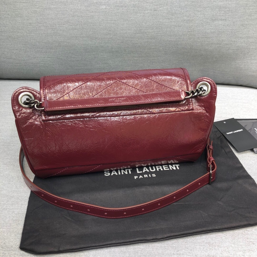 Saint Laurent Niki Medium Crinkled Shoulder Bag Burgundy For Women 11in/28cm YSL