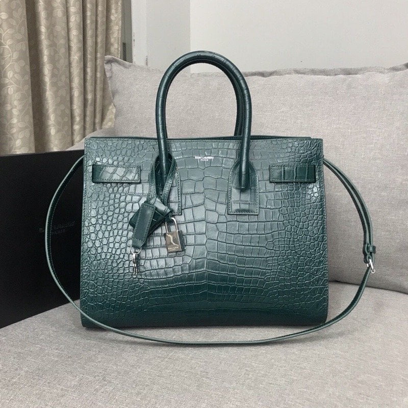 Saint Laurent Sac De Jour Small In Embossed Crocodile Green For Women 12.5in/32cm YSL