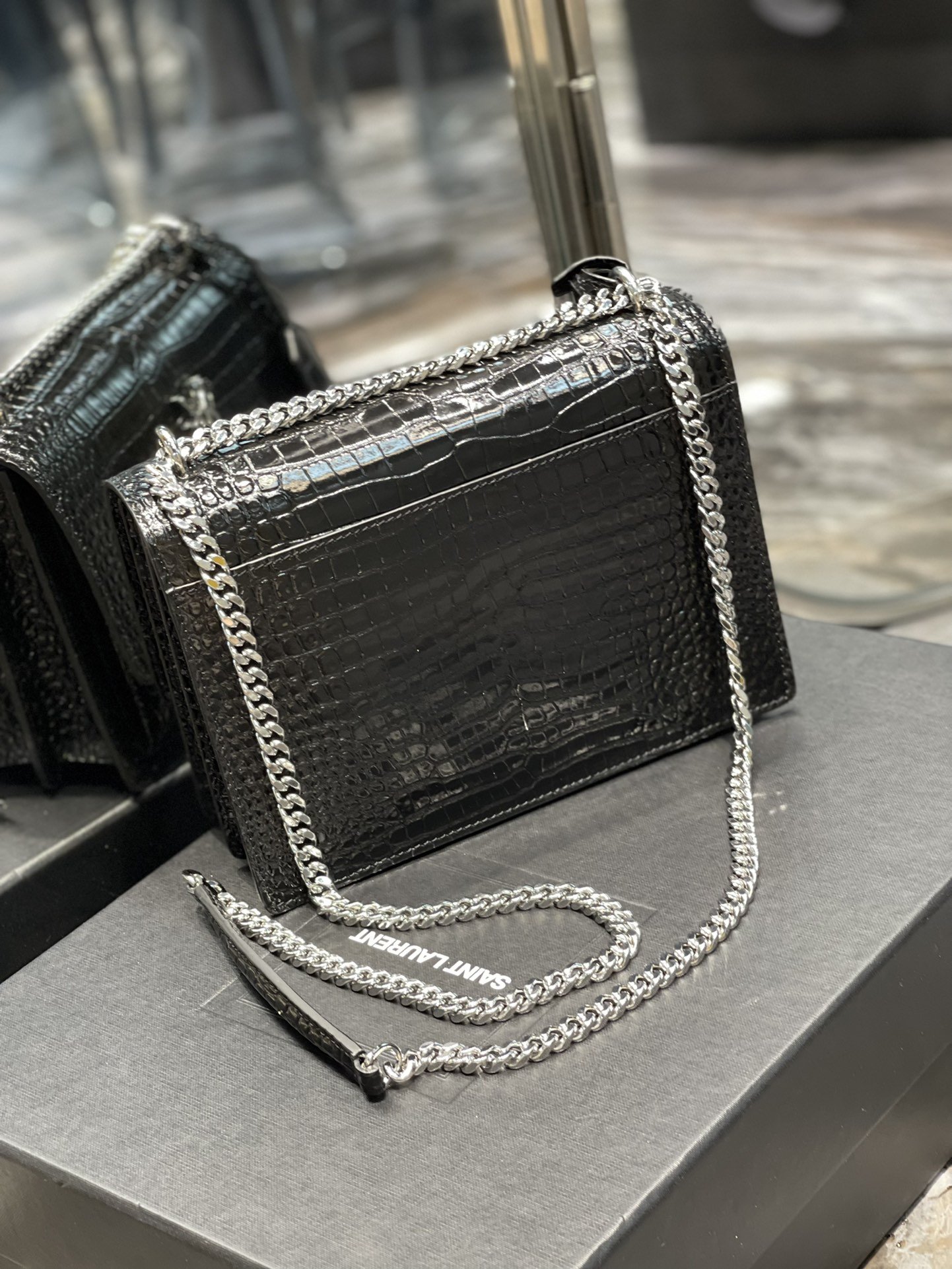 Saint Laurent Sunset Medium Chain Bag Black For Women 8.6in/22cm YSL 442906DND0U1000