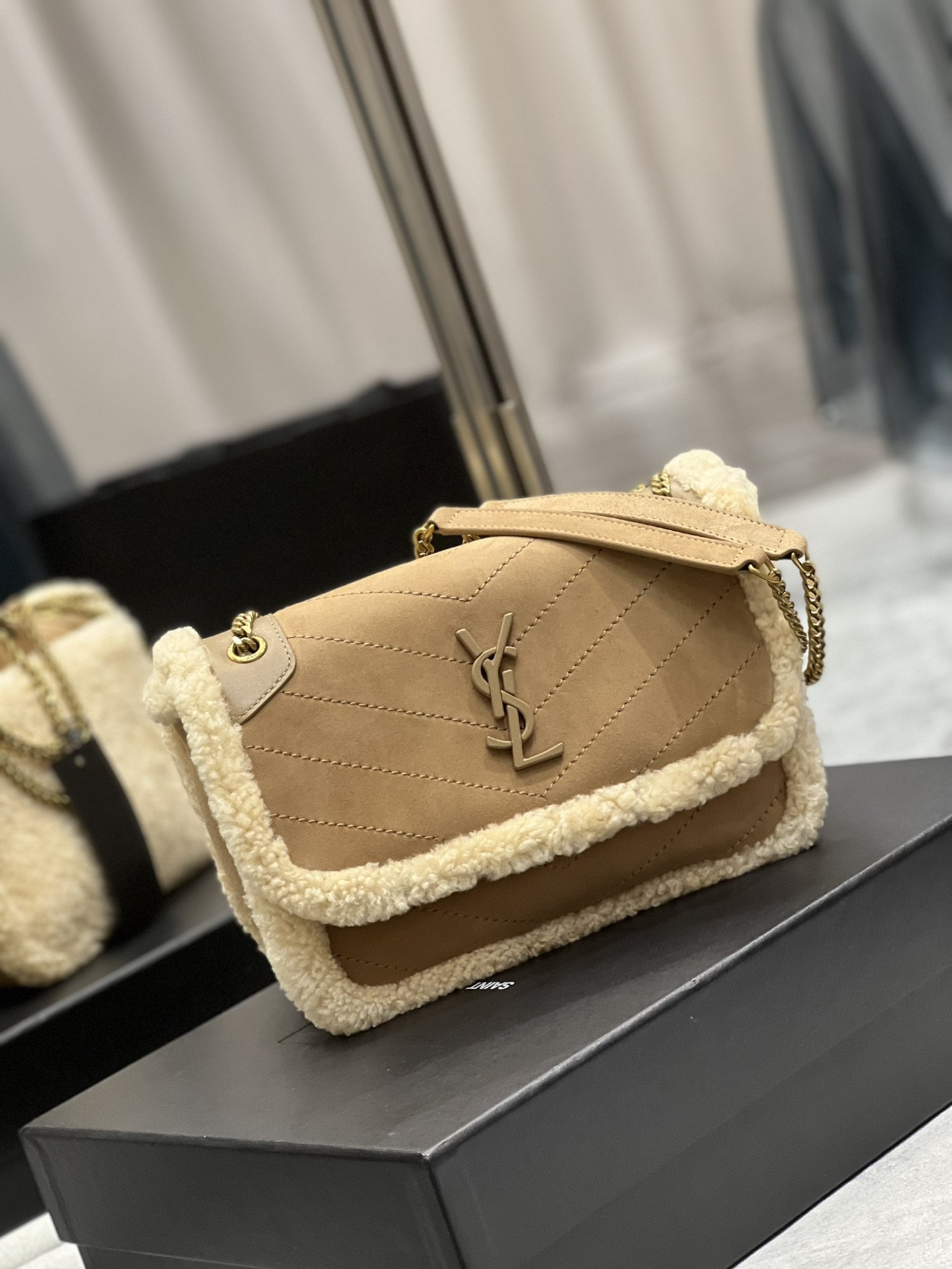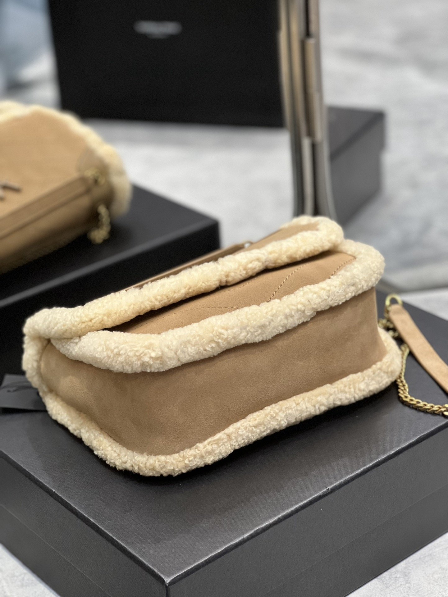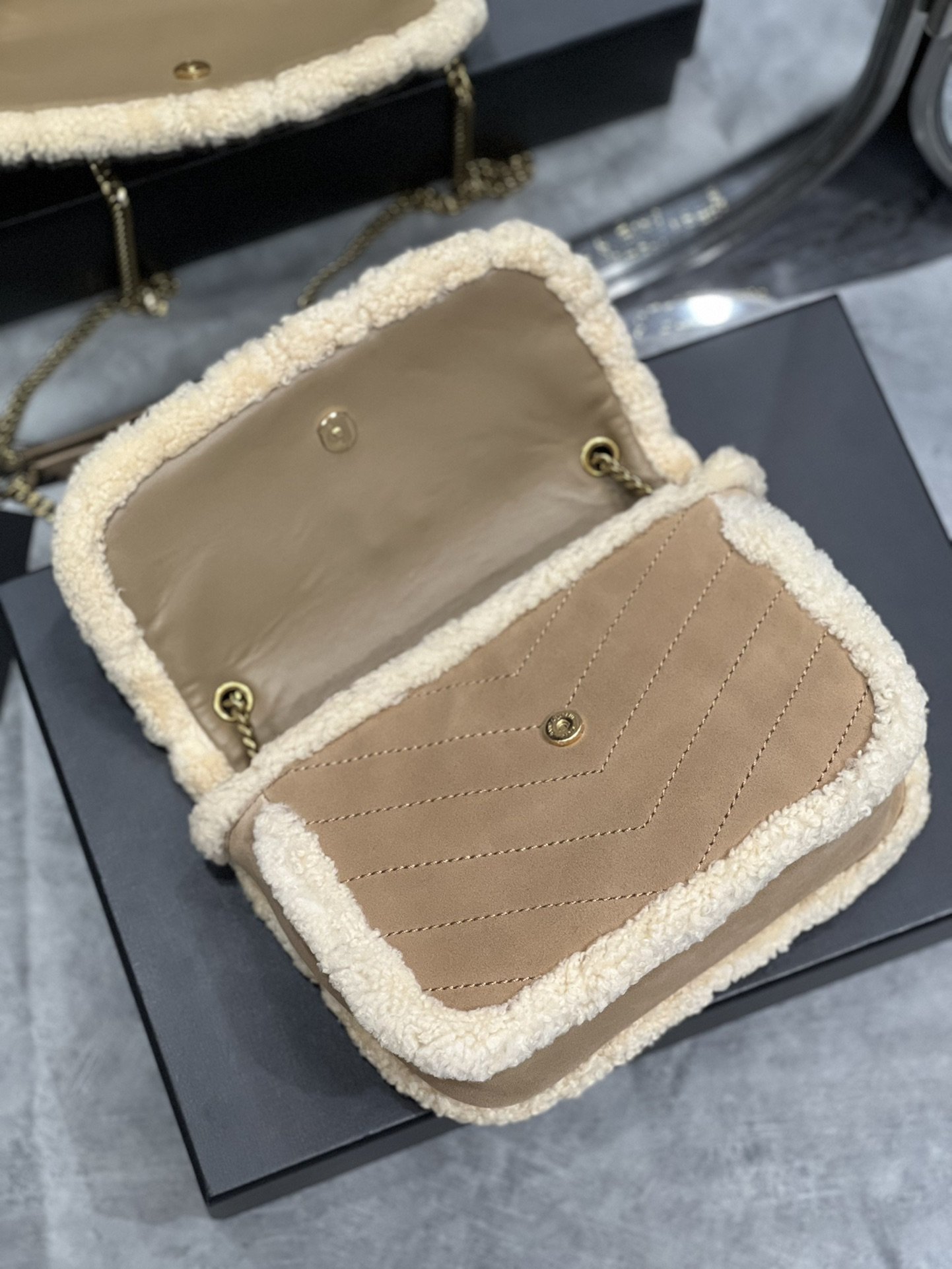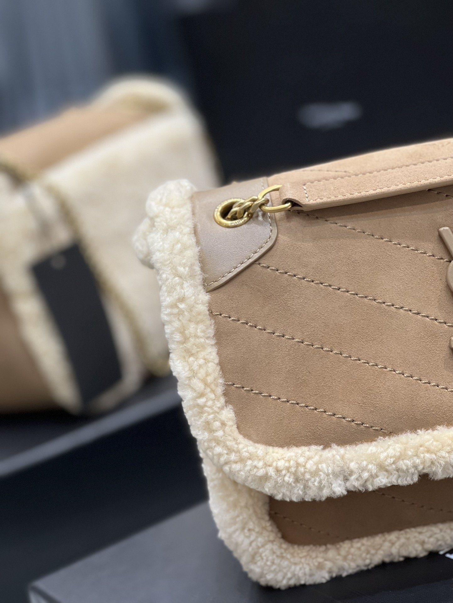 Saint Laurent Taupe Shearling Medium Niki Bag Brown For Women, Women’s Bags 8.66in/22cm YSL‎