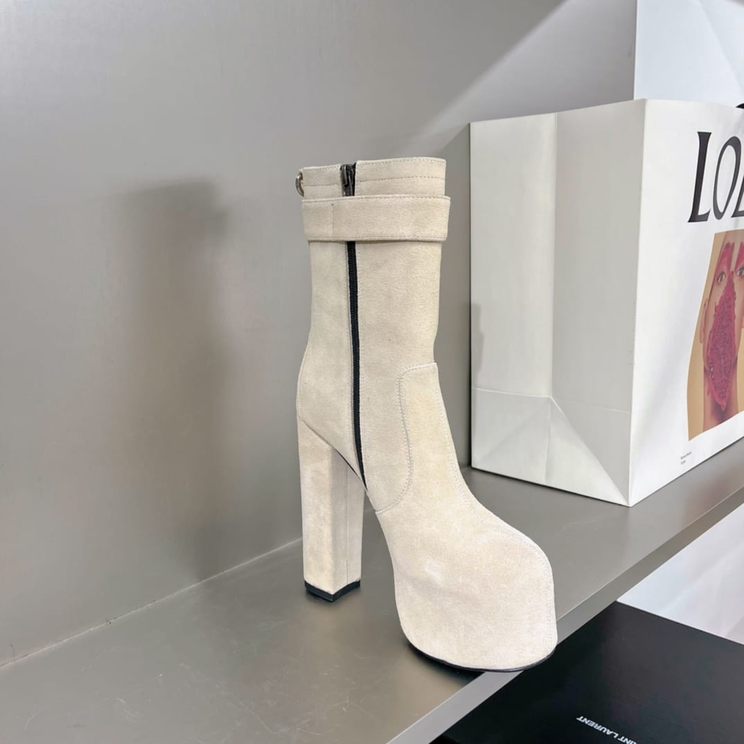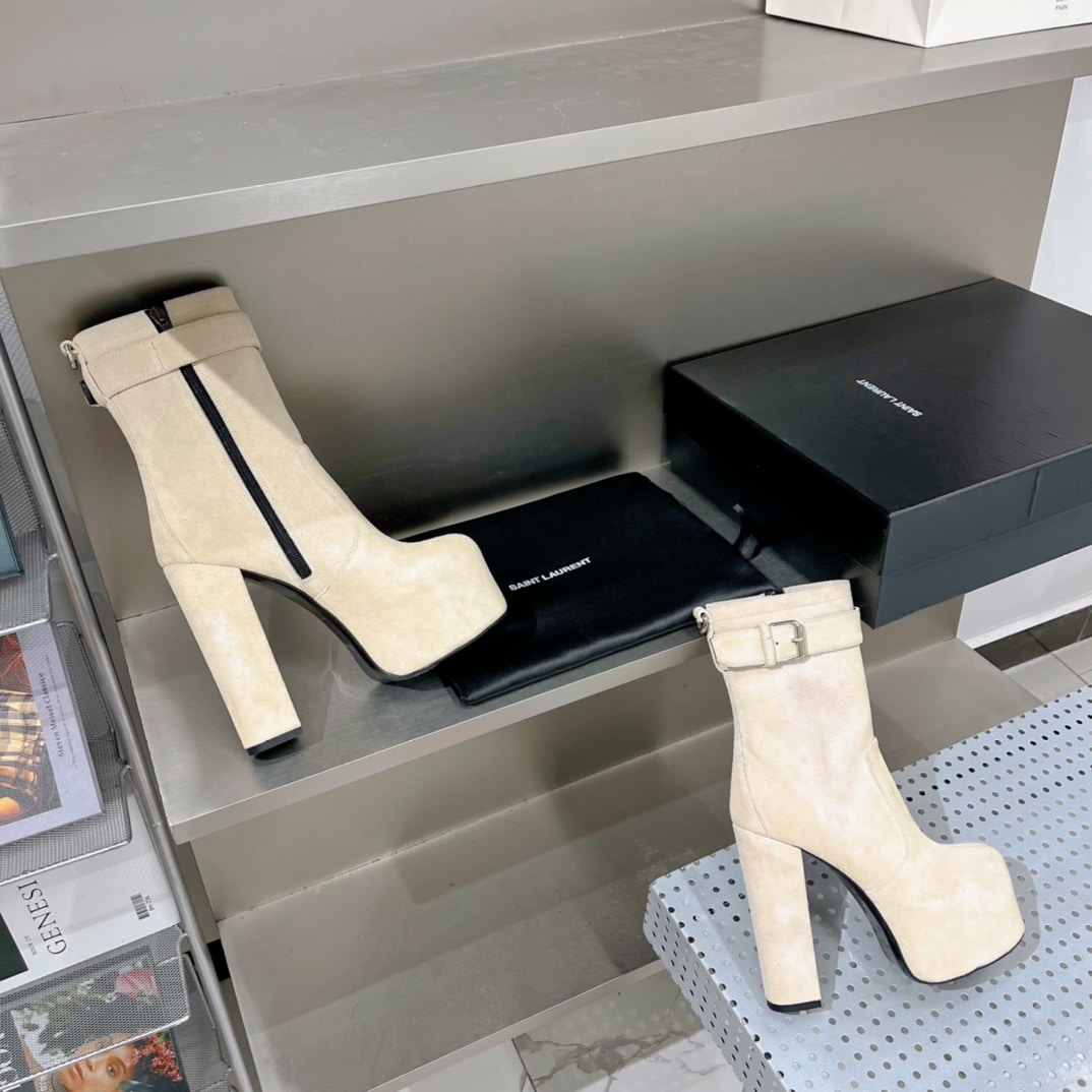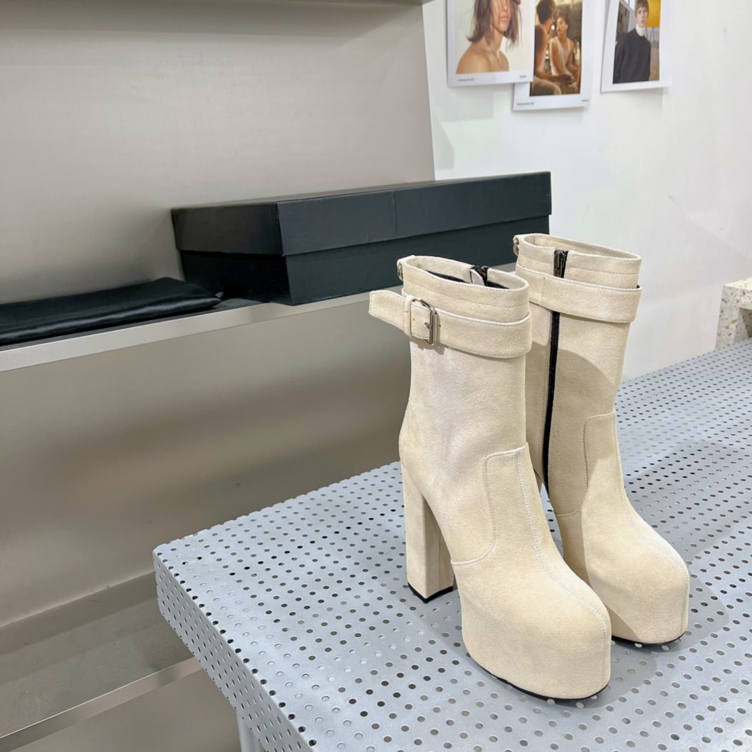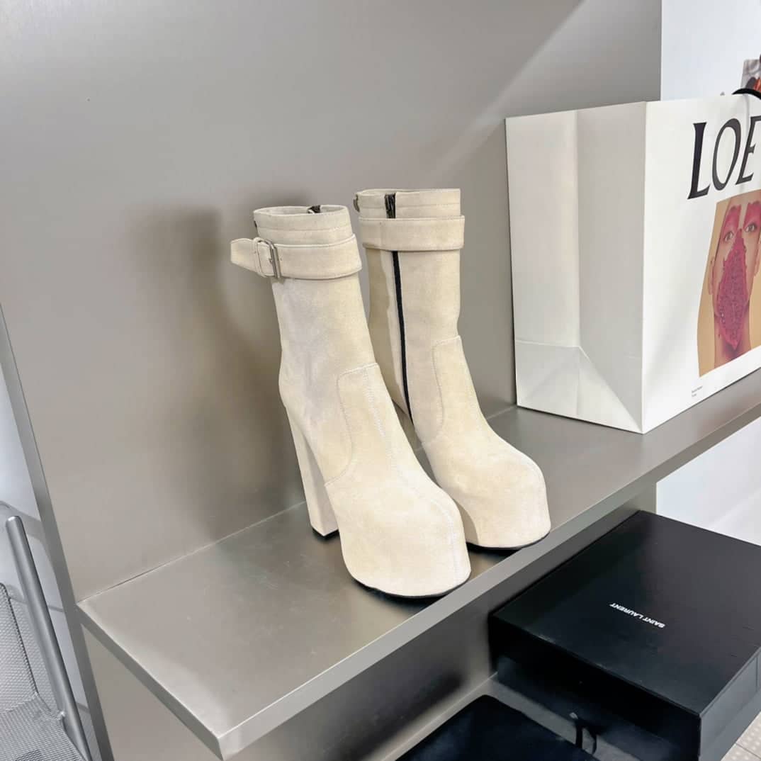 Saint Laurent Women’s Cherry Buckle Platform Booties White For Women YSL