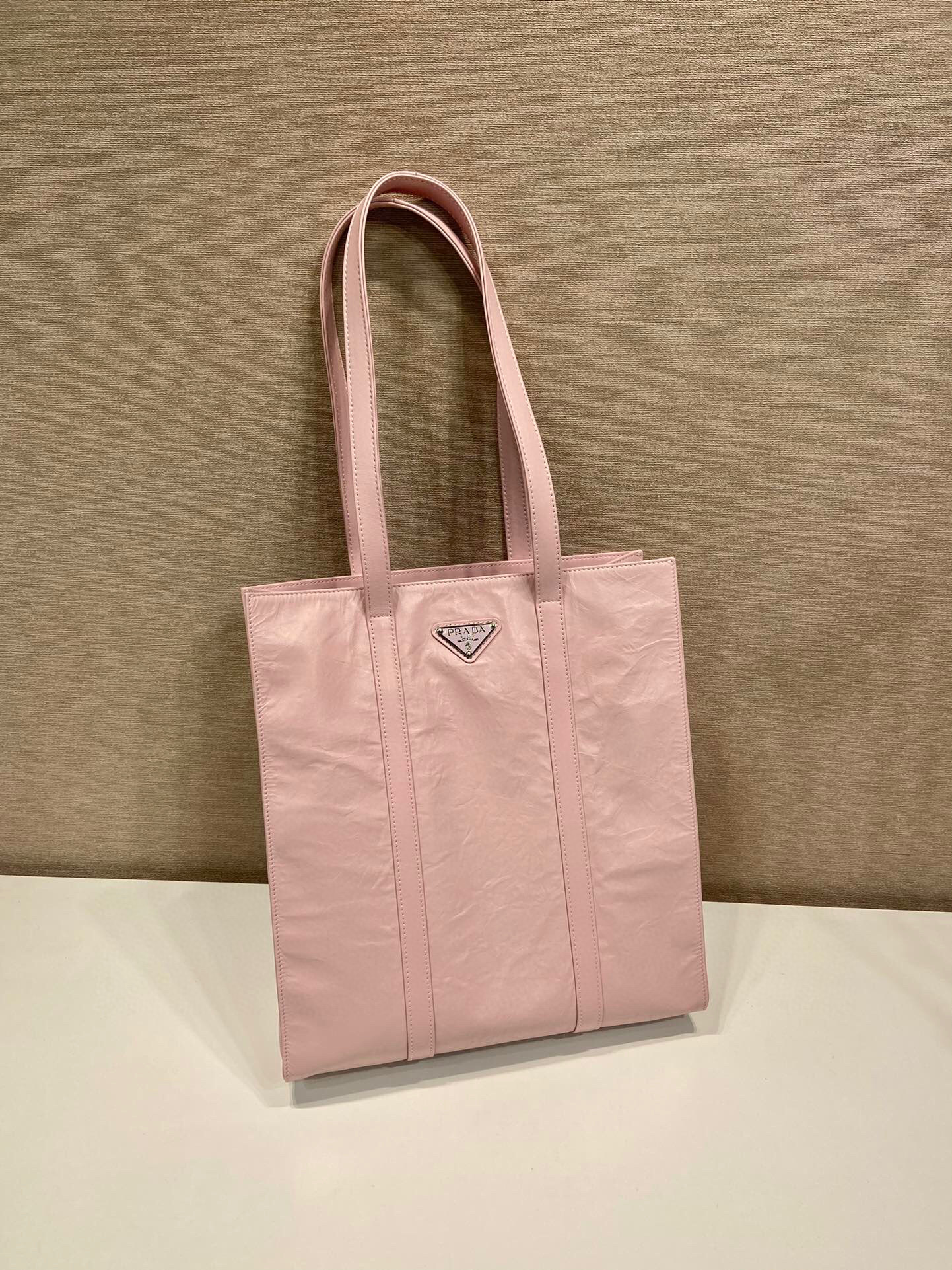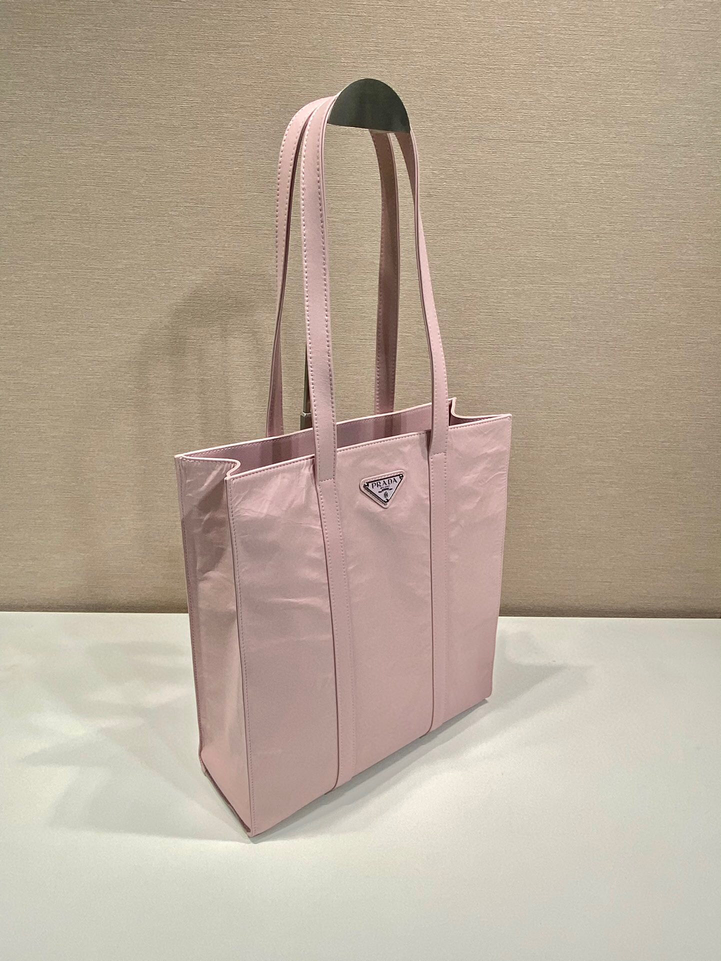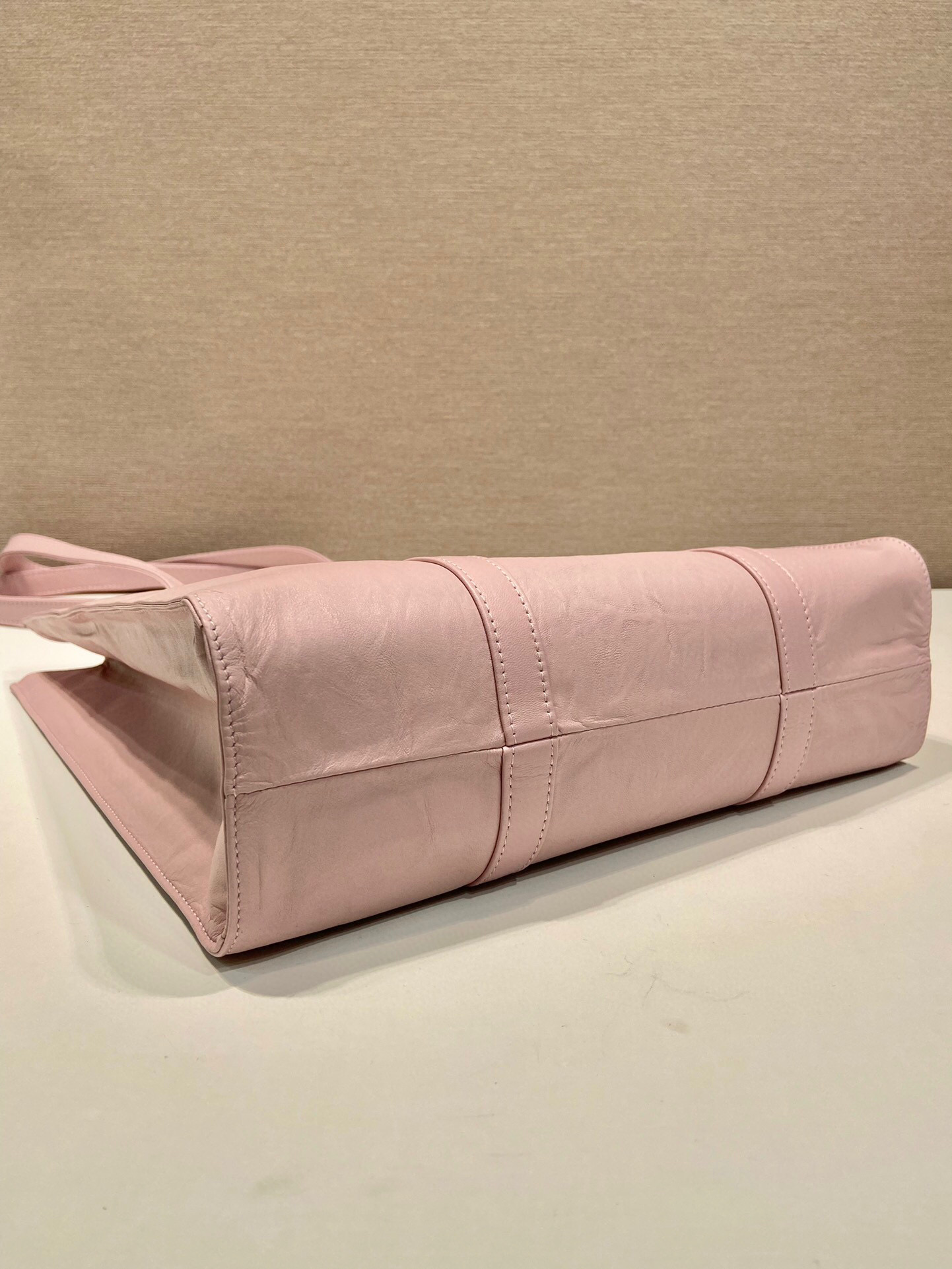 Prada Small Antiqued Nappa Tote Bag In Pink/Black 1BG459_UVL_F0E18_V_OOO
