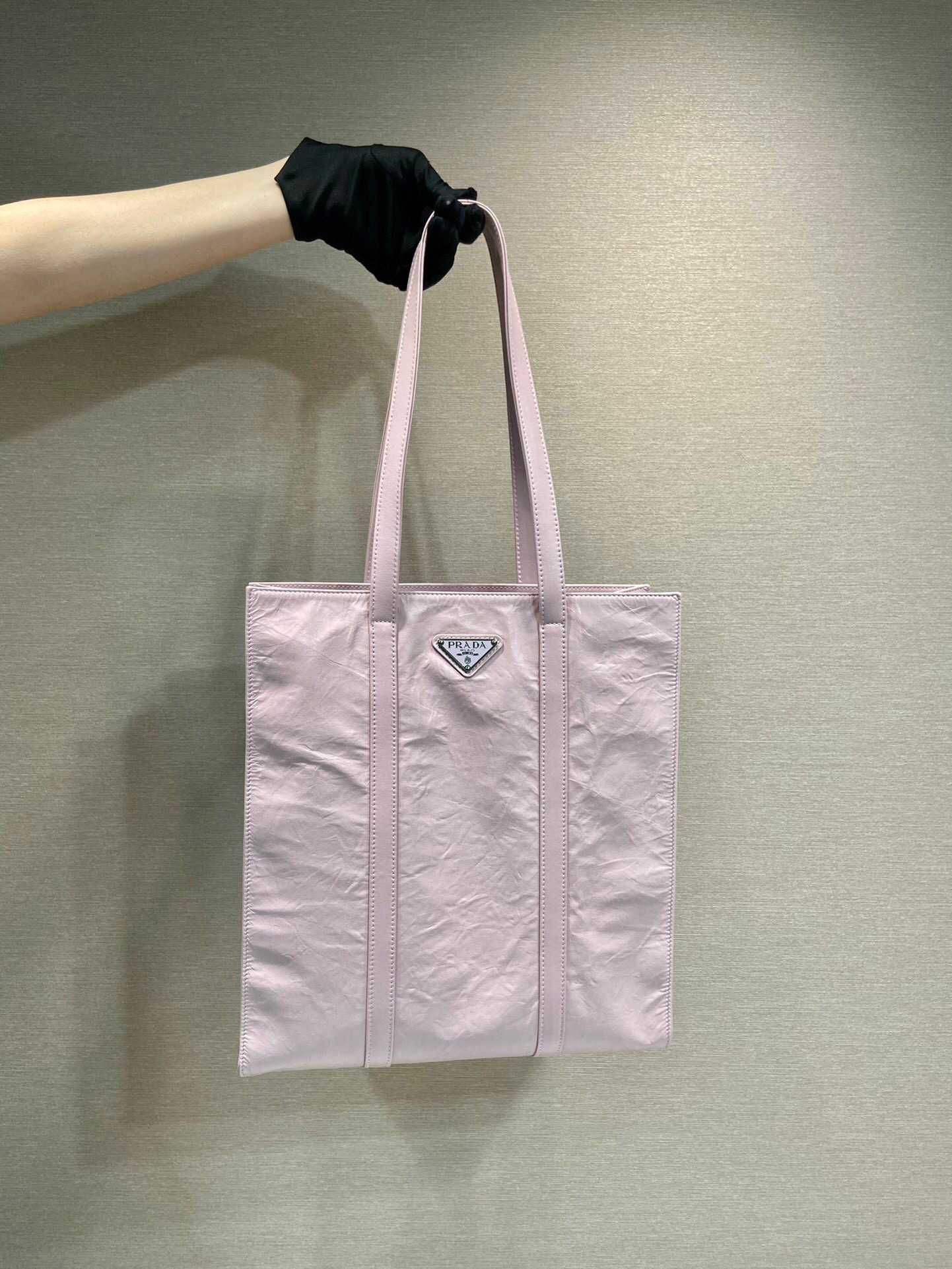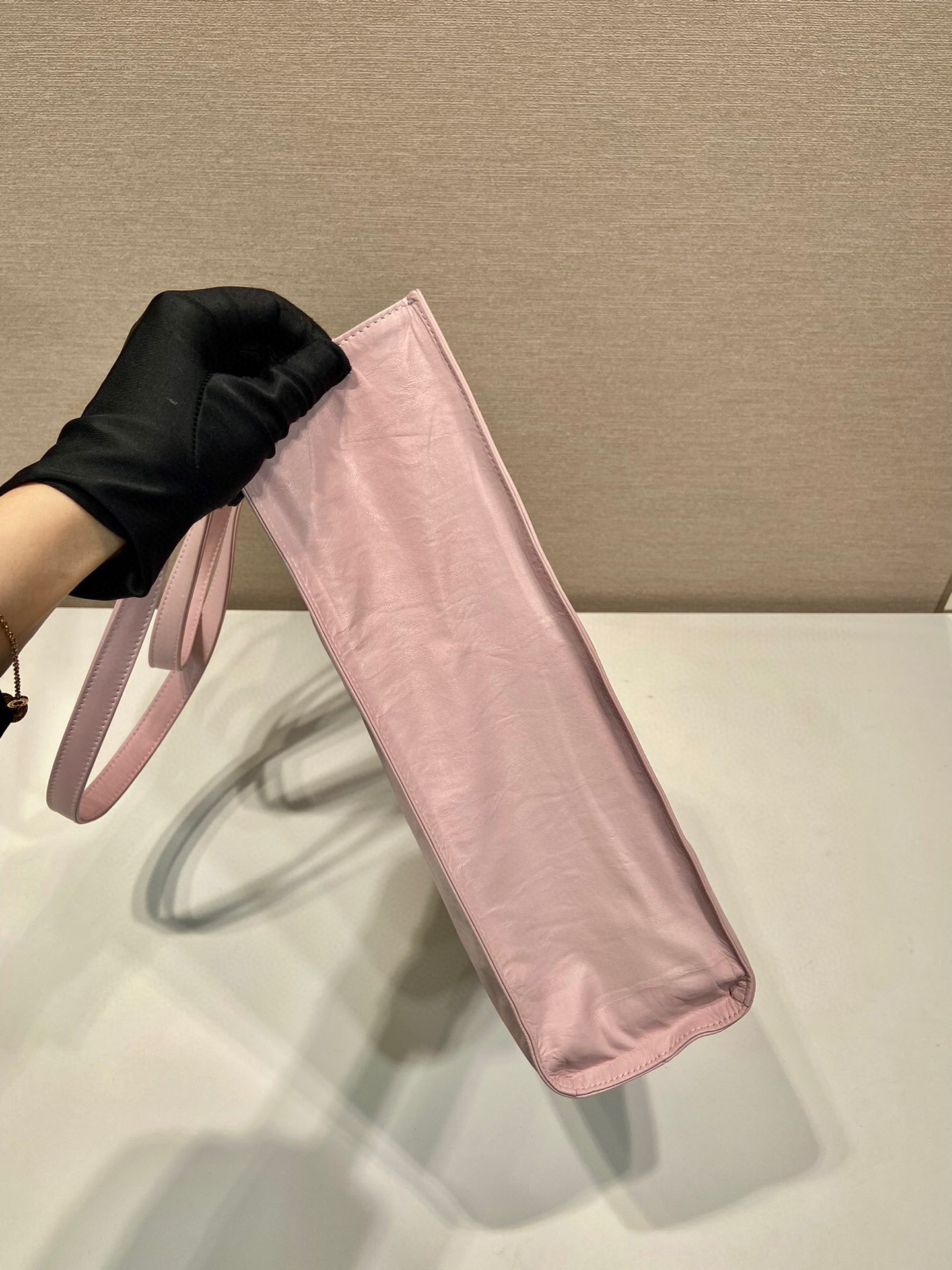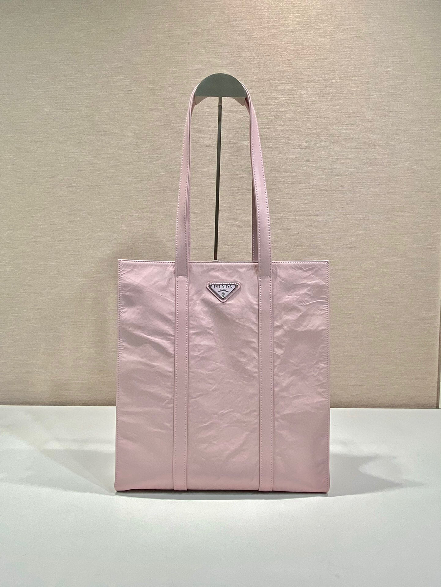 Prada Small Antiqued Nappa Tote Bag In Pink/Black 1BG459_UVL_F0E18_V_OOO