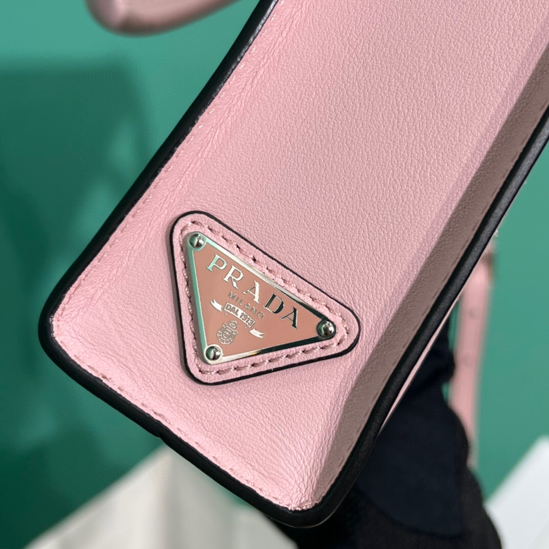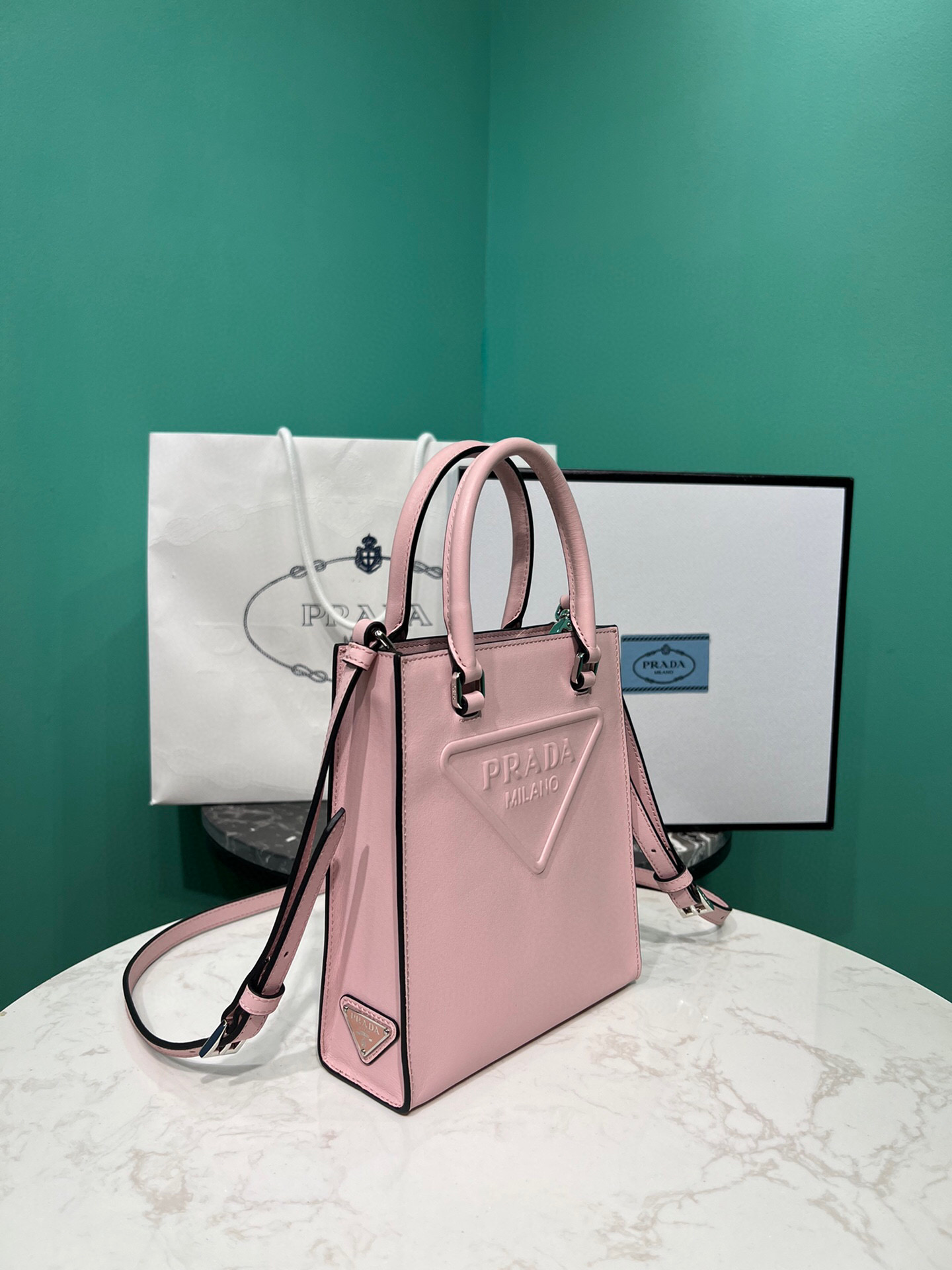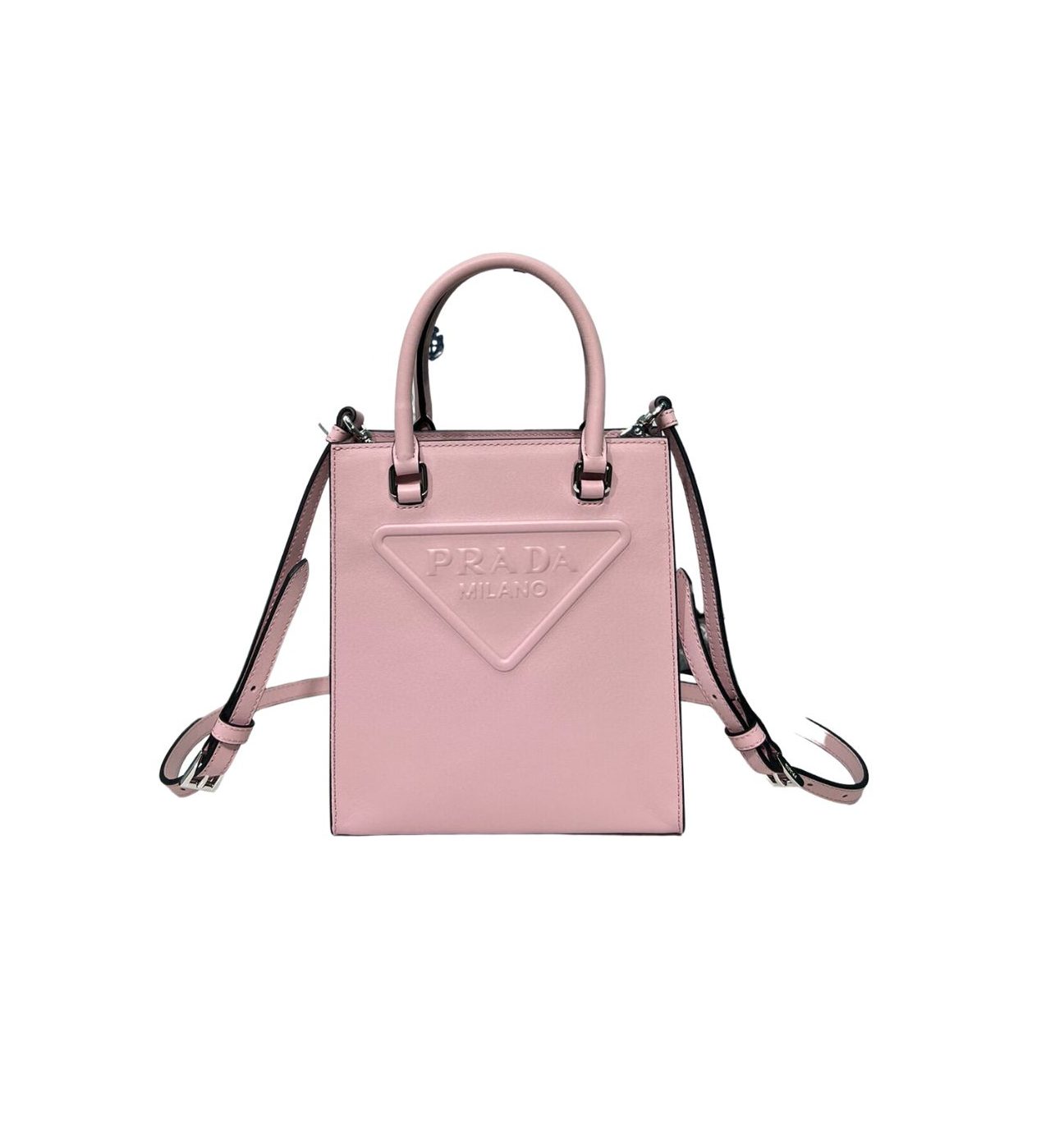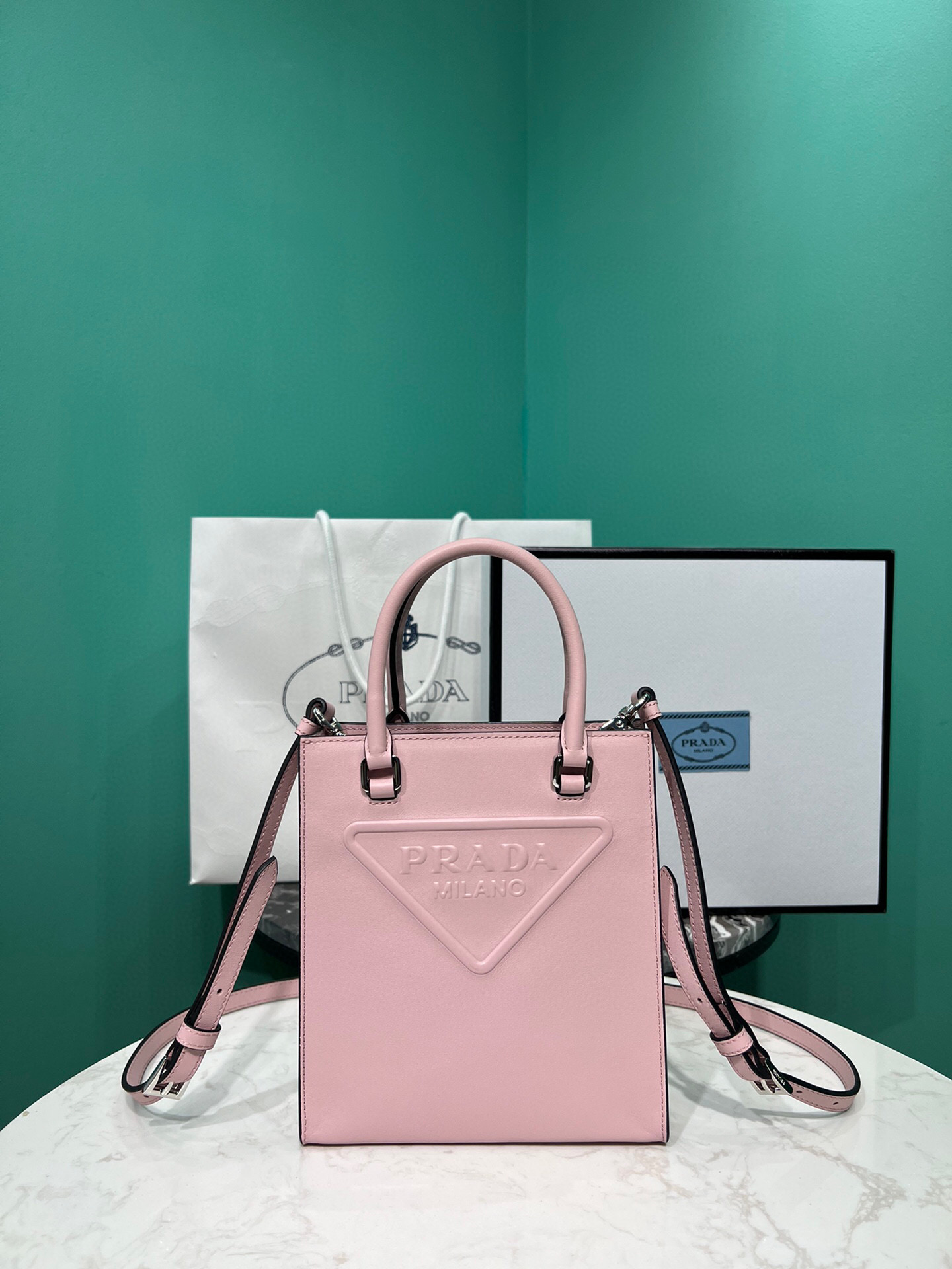 Small Tote Plain handbag with double handles and detachable shoulder strap, so you can carry it in a variety of ways. The design of the bag is simple and elegant, combined with modern charm. The glazed triangle features a braille logo that adds style to the house. Simplicity, atmosphere and style.