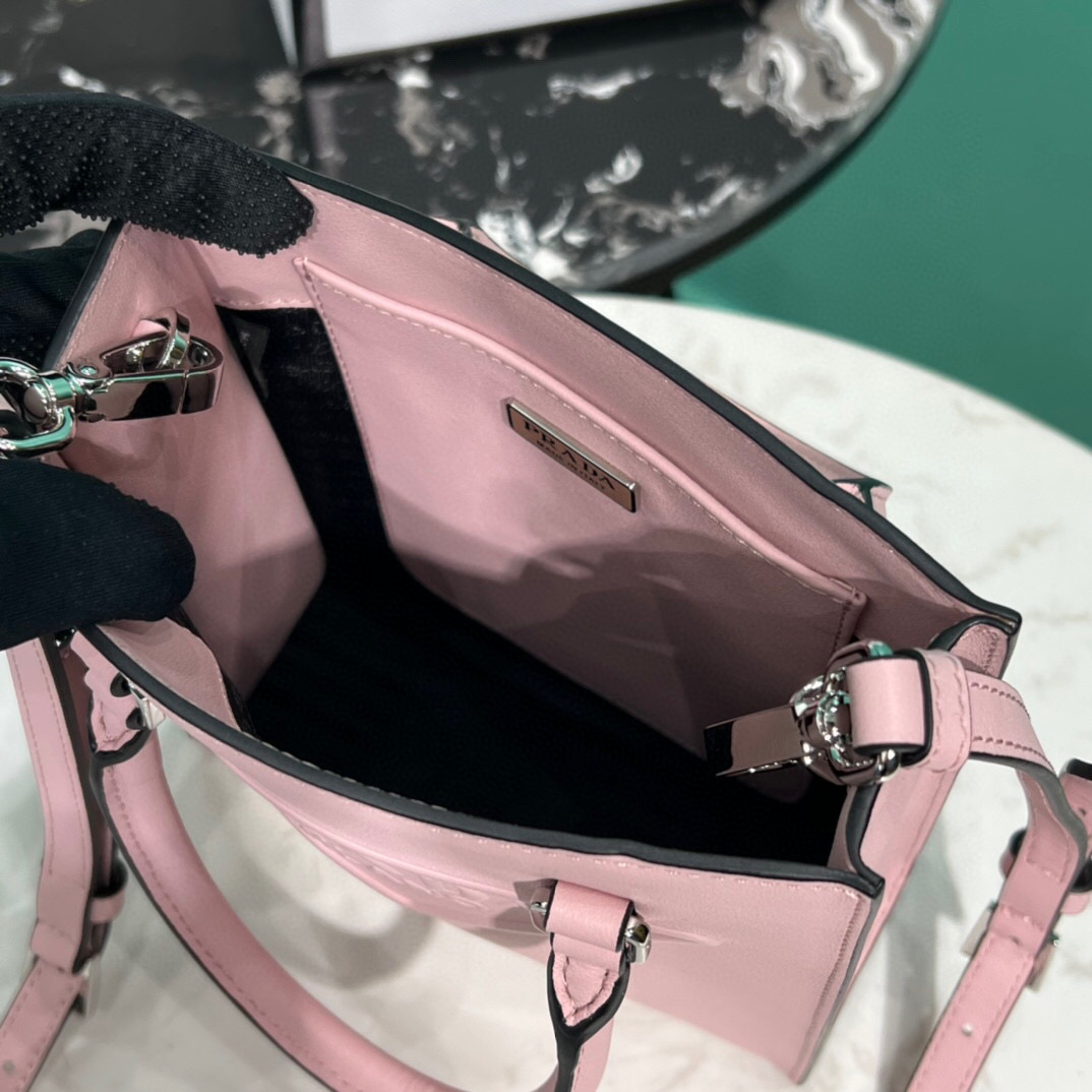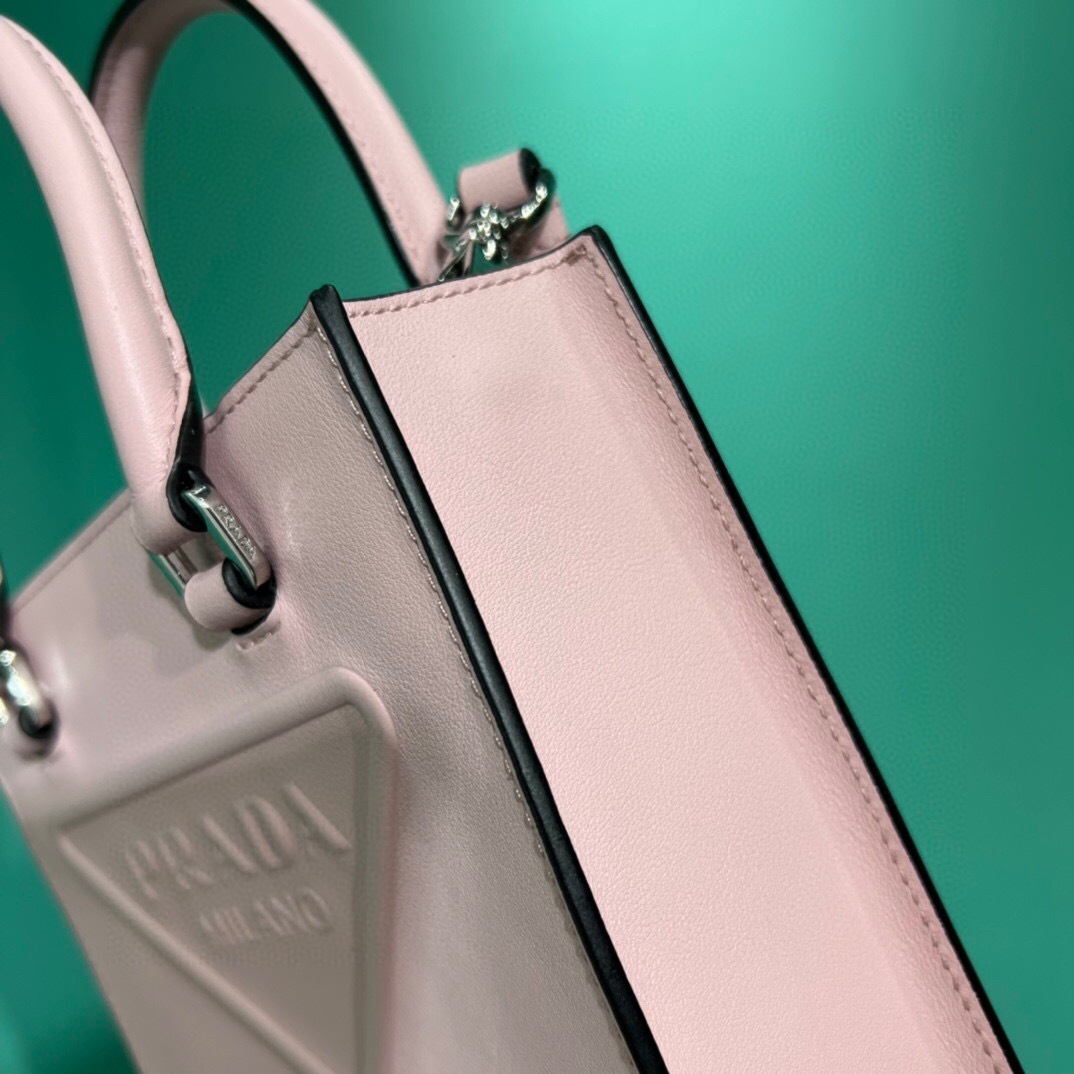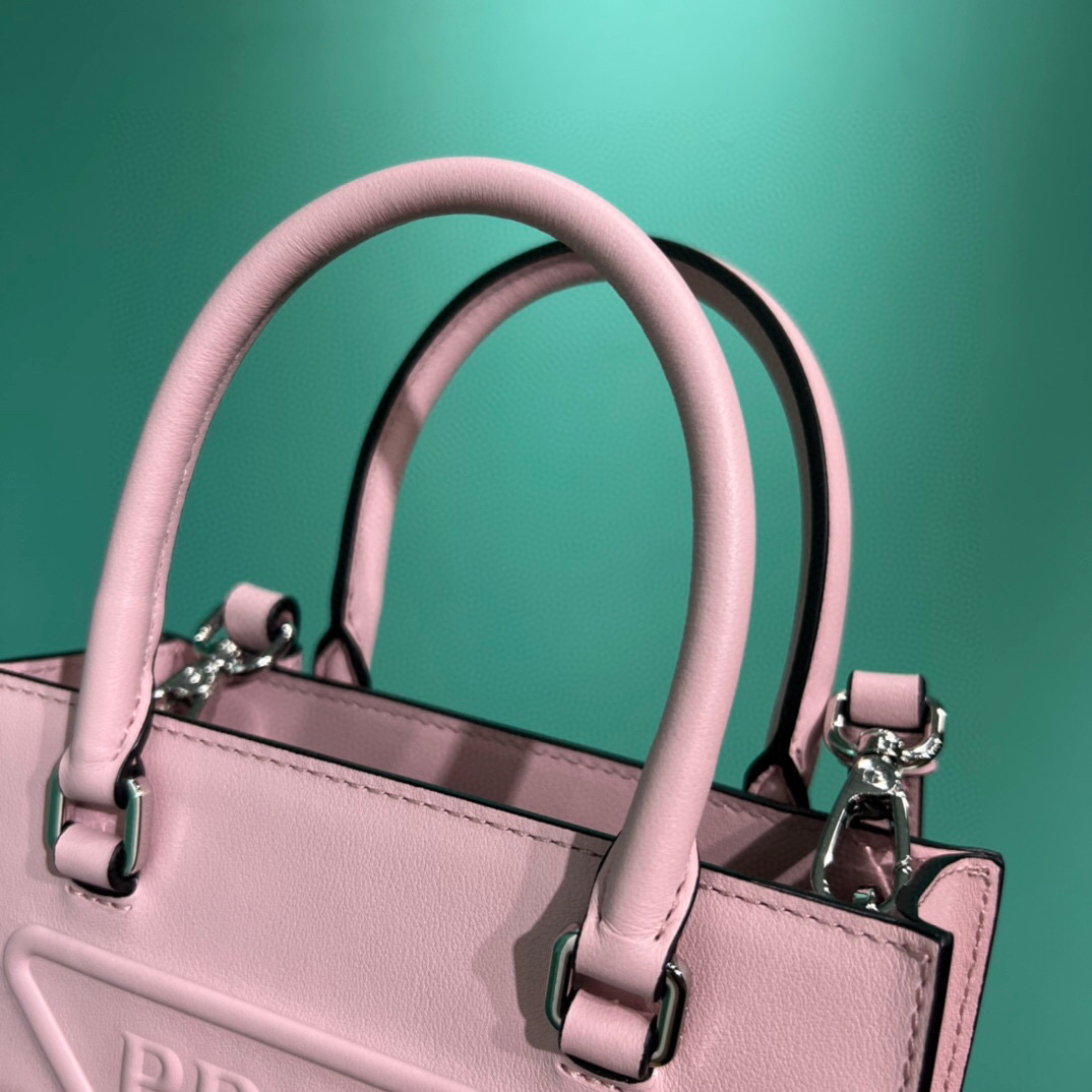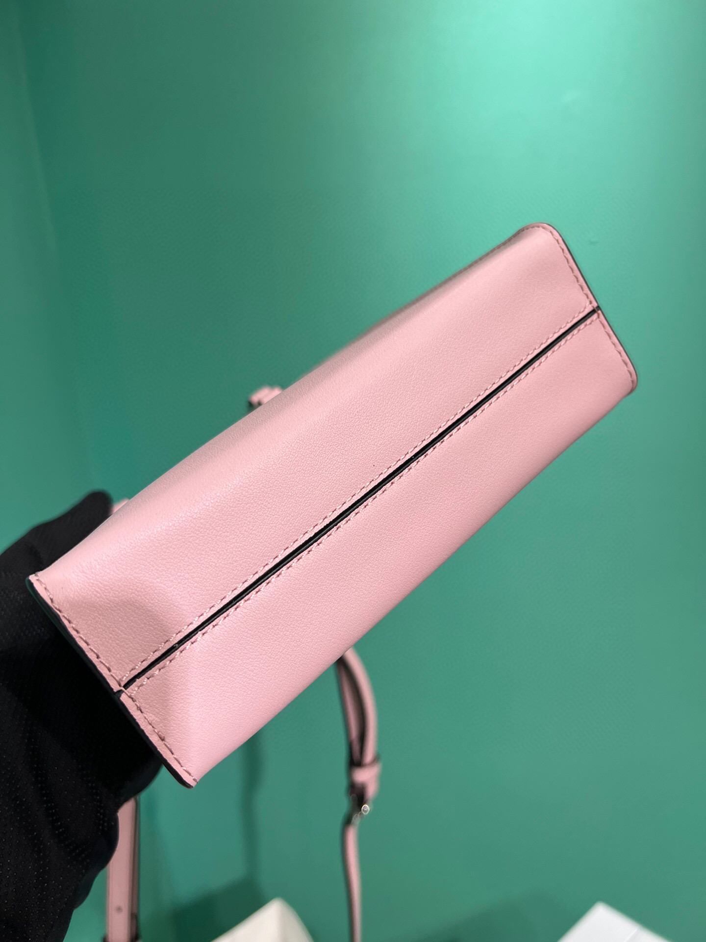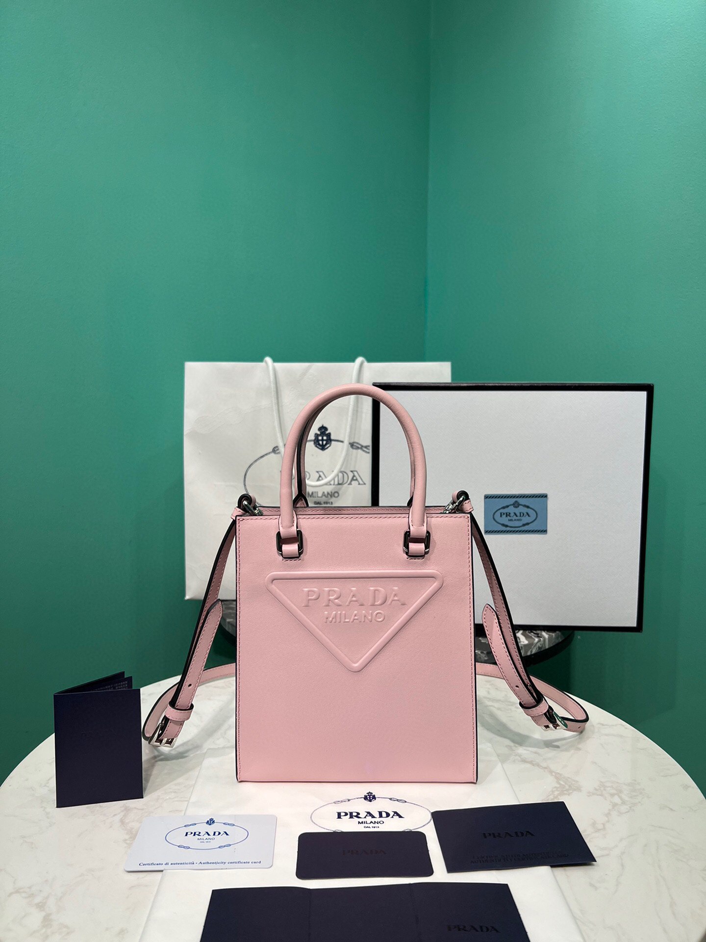 Small Tote Plain handbag with double handles and detachable shoulder strap, so you can carry it in a variety of ways. The design of the bag is simple and elegant, combined with modern charm. The glazed triangle features a braille logo that adds style to the house. Simplicity, atmosphere and style.