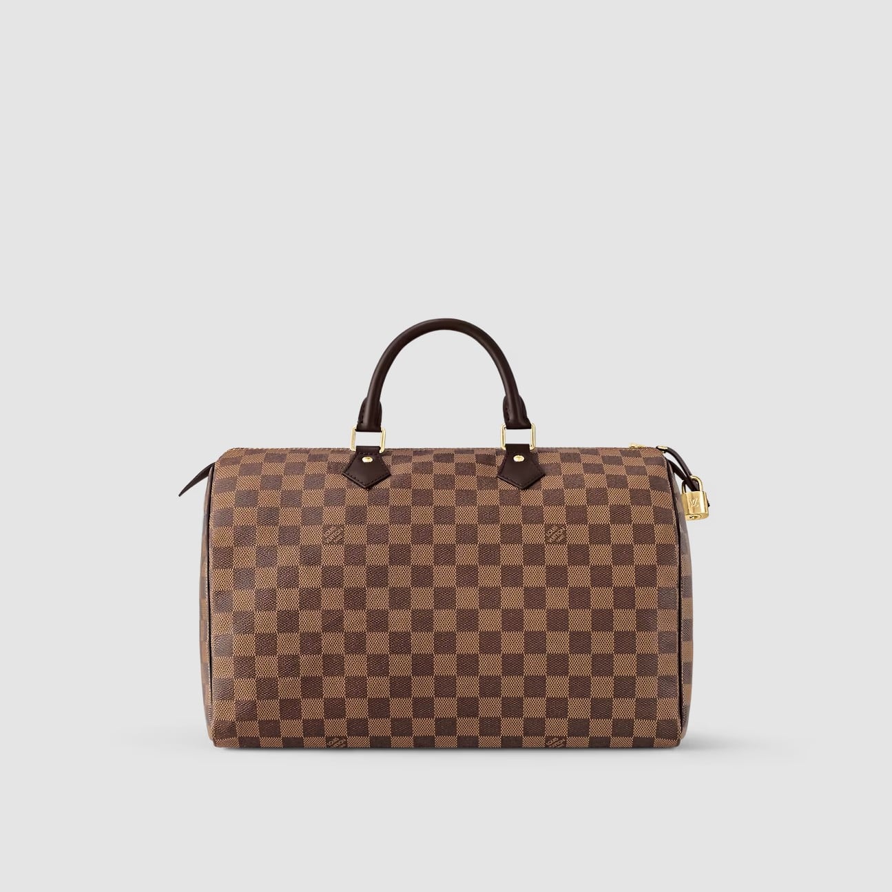 Made from elegant Damier Ebene canvas, the Speedy 35 is a stylish handbag for both travel and daily use. Launched in 1930 as the “Express” and inspired by that era’s rapid transit, today’s updated Speedy remains a timeless House icon, with its unmistakable silhouette, rolled handles and engraved, signature padlock.