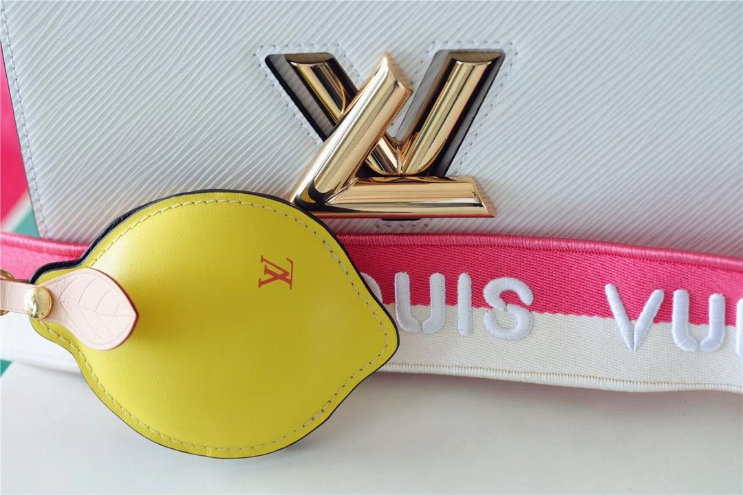 To celebrate summer, this Twist MM handbag in Epi grained is accessorized with a playful lemon-shaped charm. The reversible strap makes this Twist particularly versatile: one side sports a two-tone colorway with AAA Replica Louis Vuitton LV embroidered into the textile while the other monochromatic side delivers a more understated look.